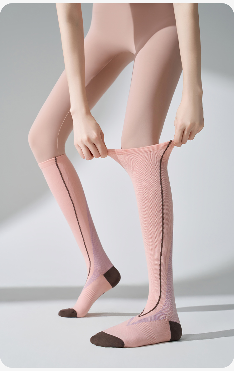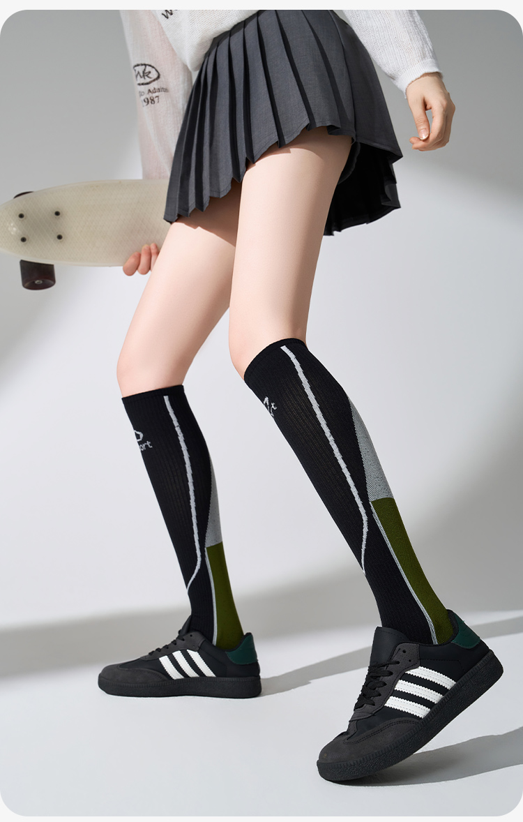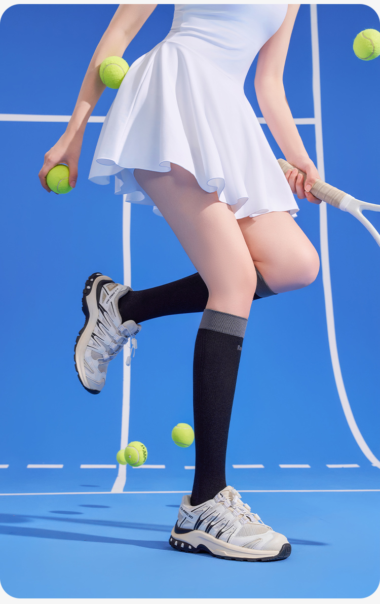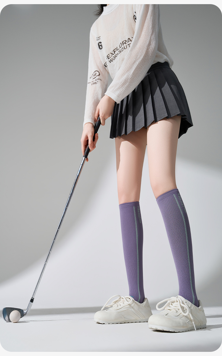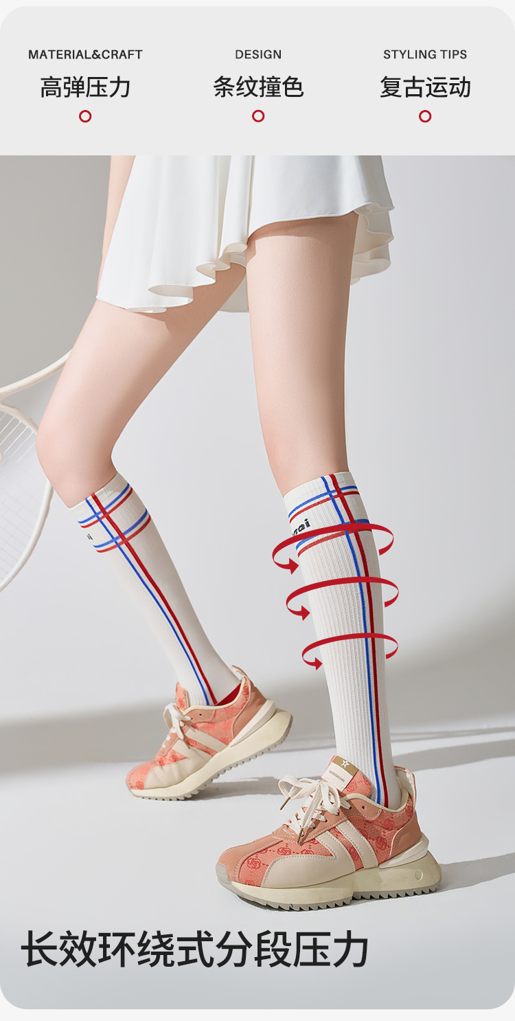 秋冬戶外徒步登山襪專業羽毛球襪跑步專用壓力襪女健身白色小腿襪