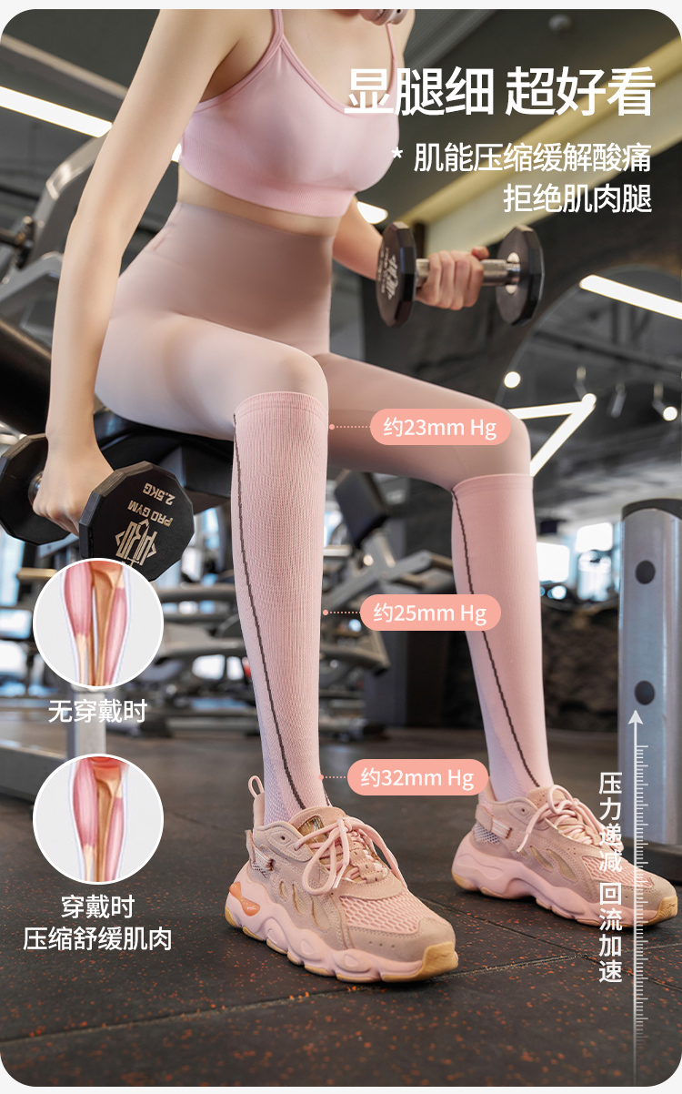 秋冬專業運動壓力小腿襪戶外登山襪女跳繩徒步騎行健身長筒網球襪