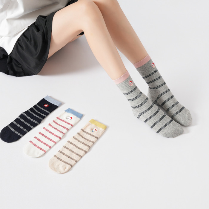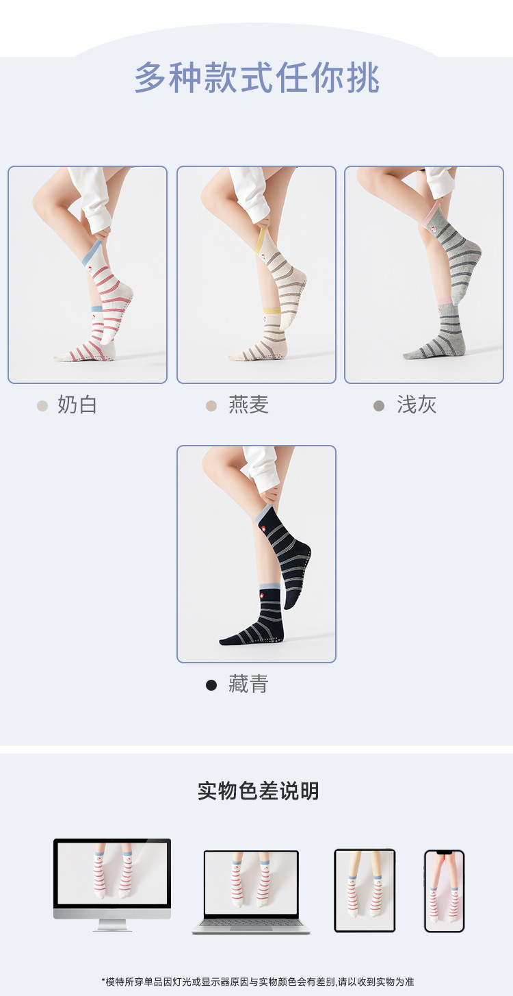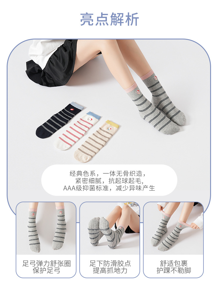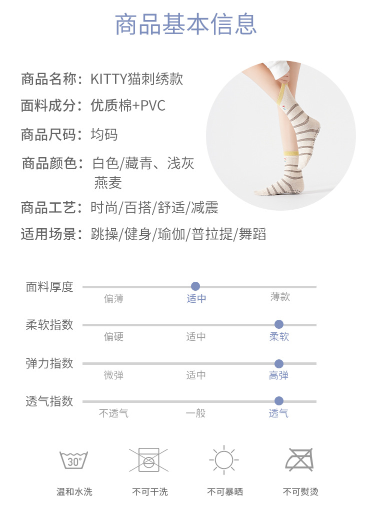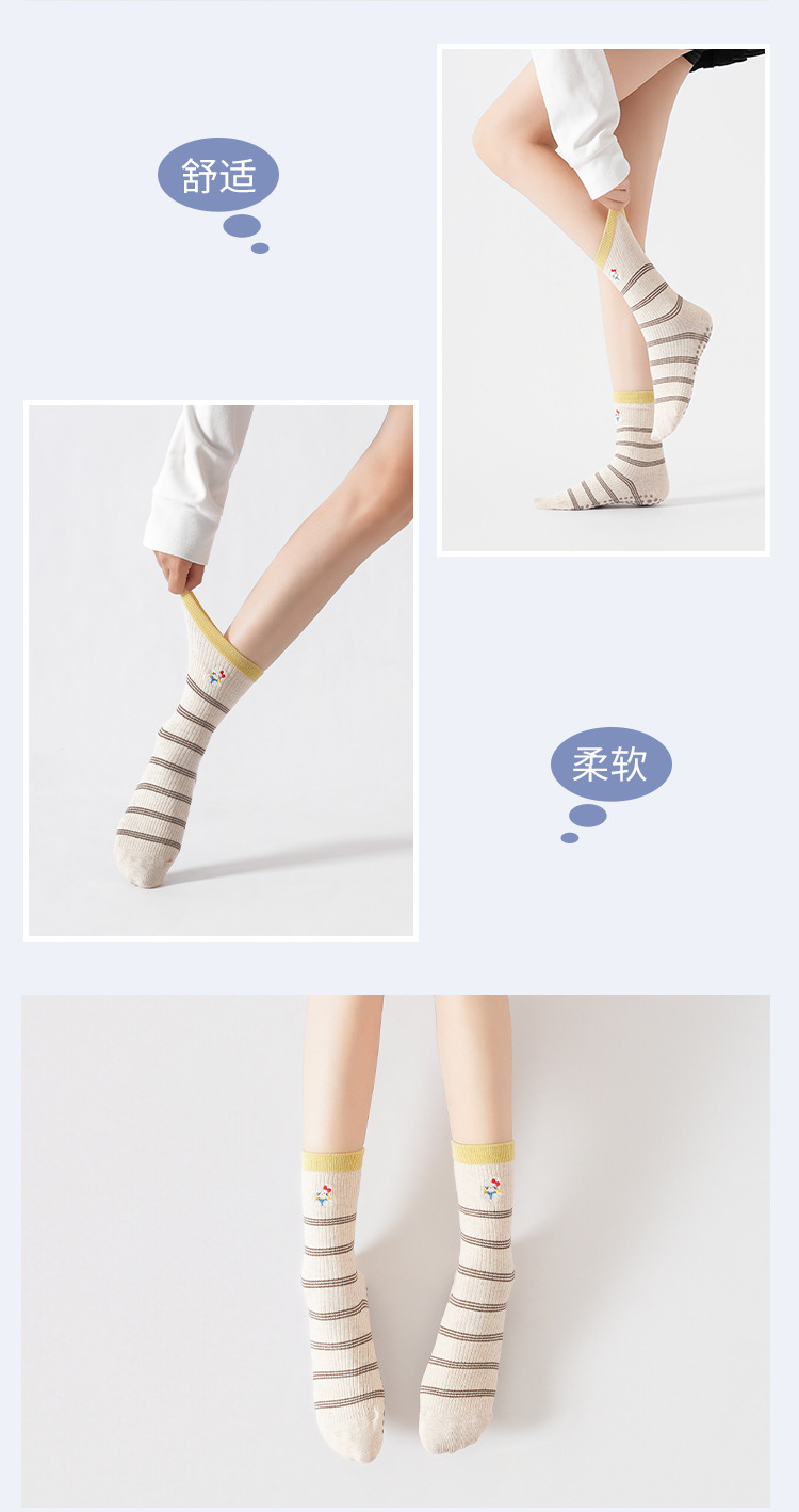 2025秋新品條紋專業瑜珈普拉提襪卡通Kitty貓刺綉可愛防滑地板襪