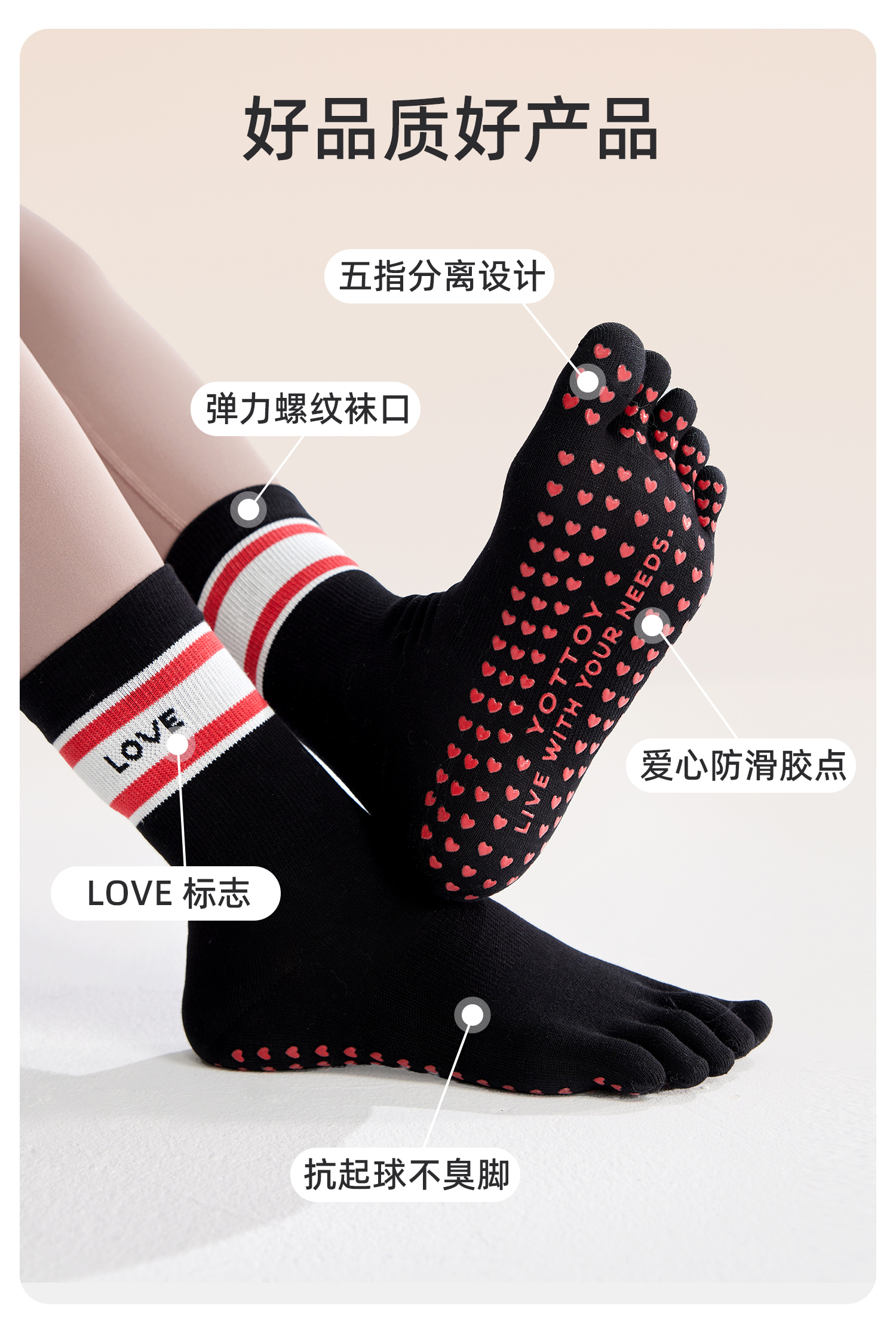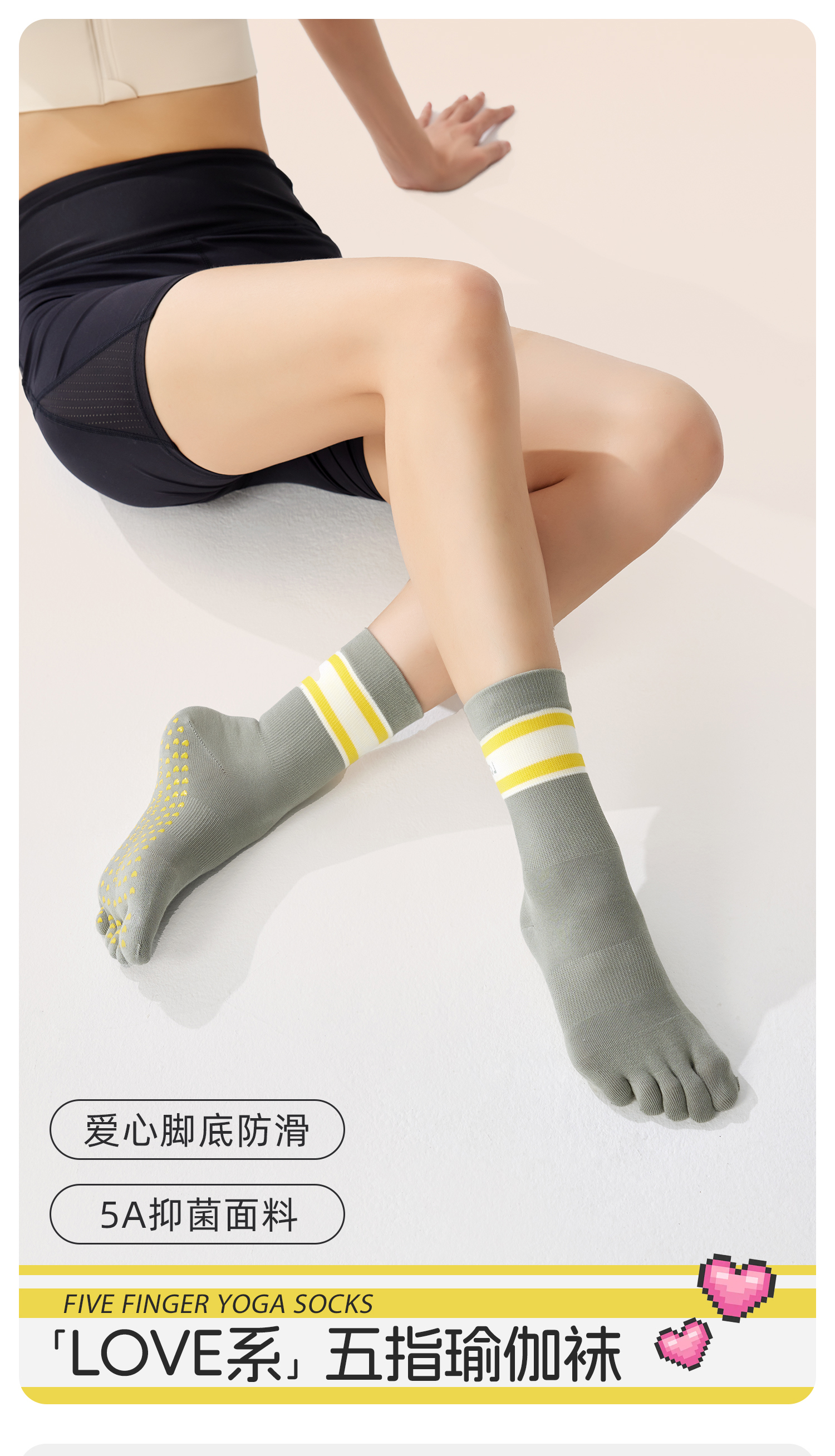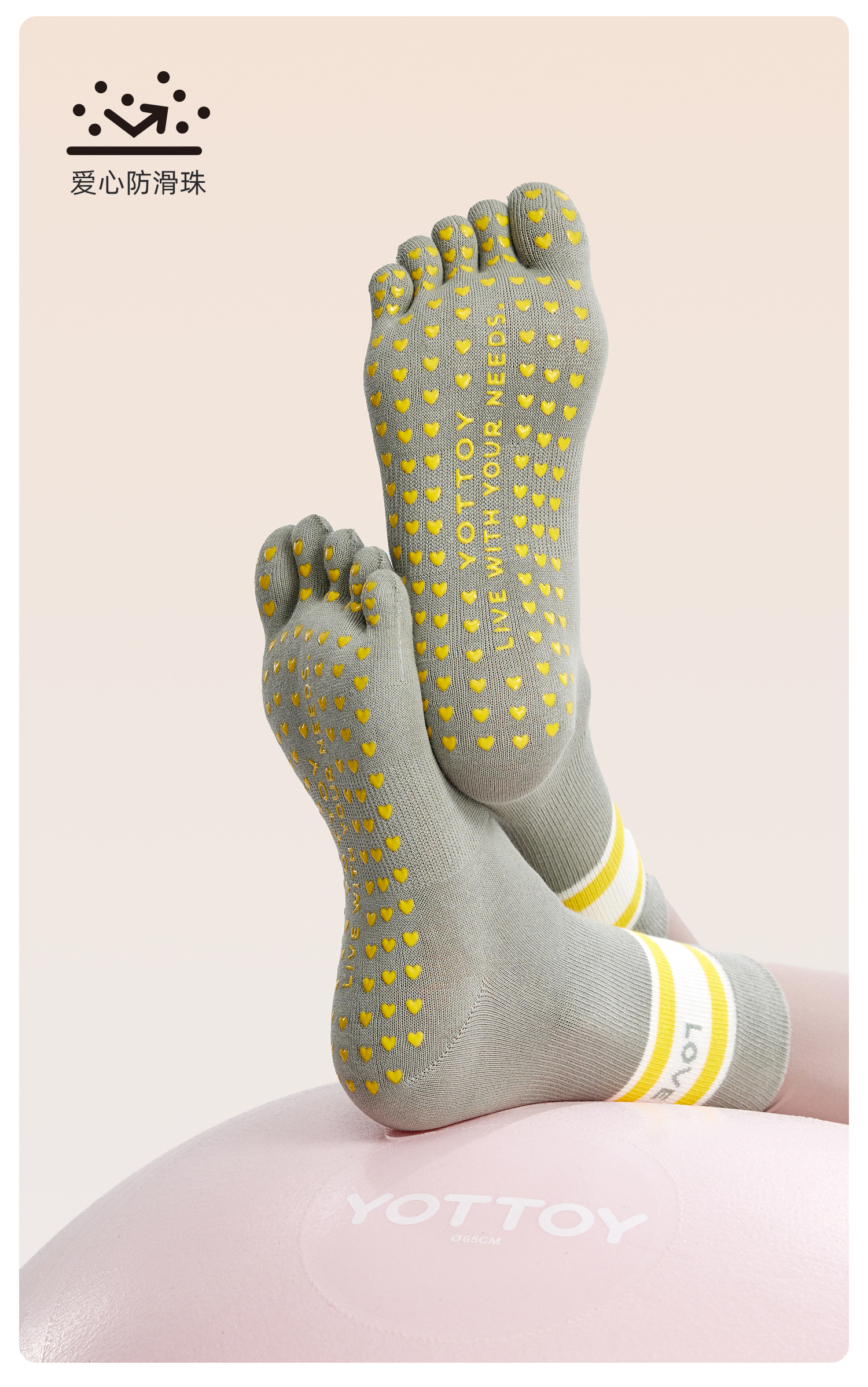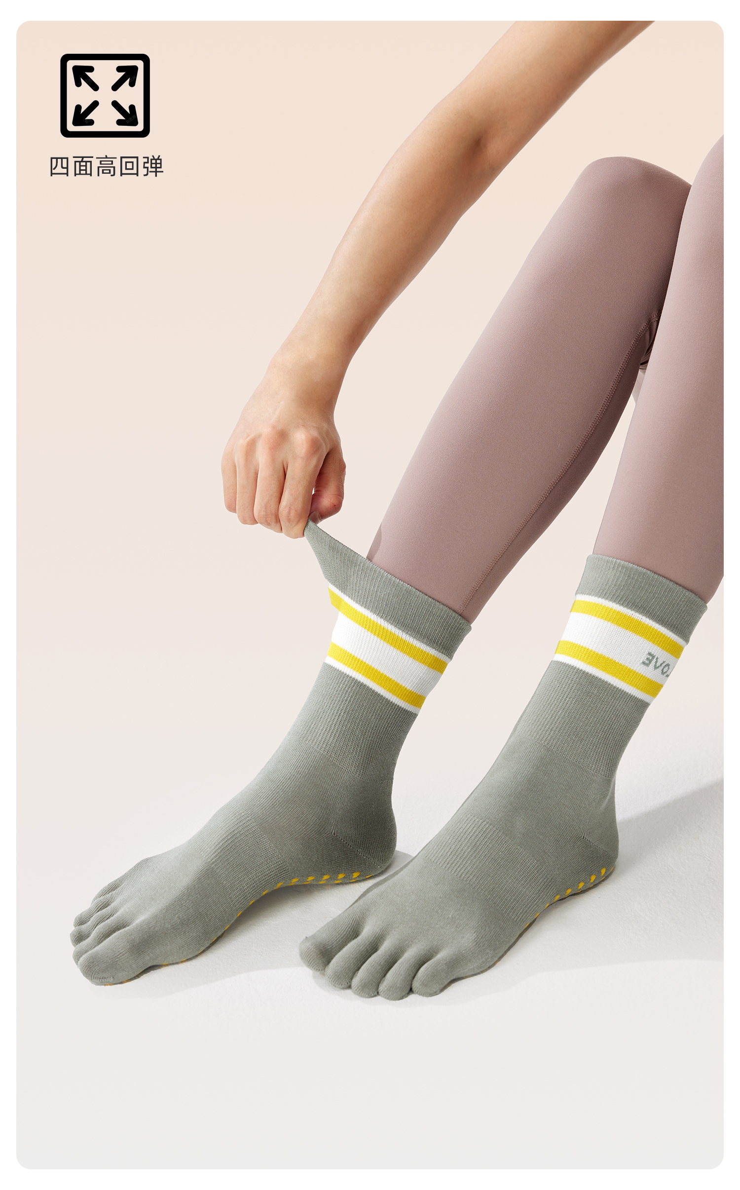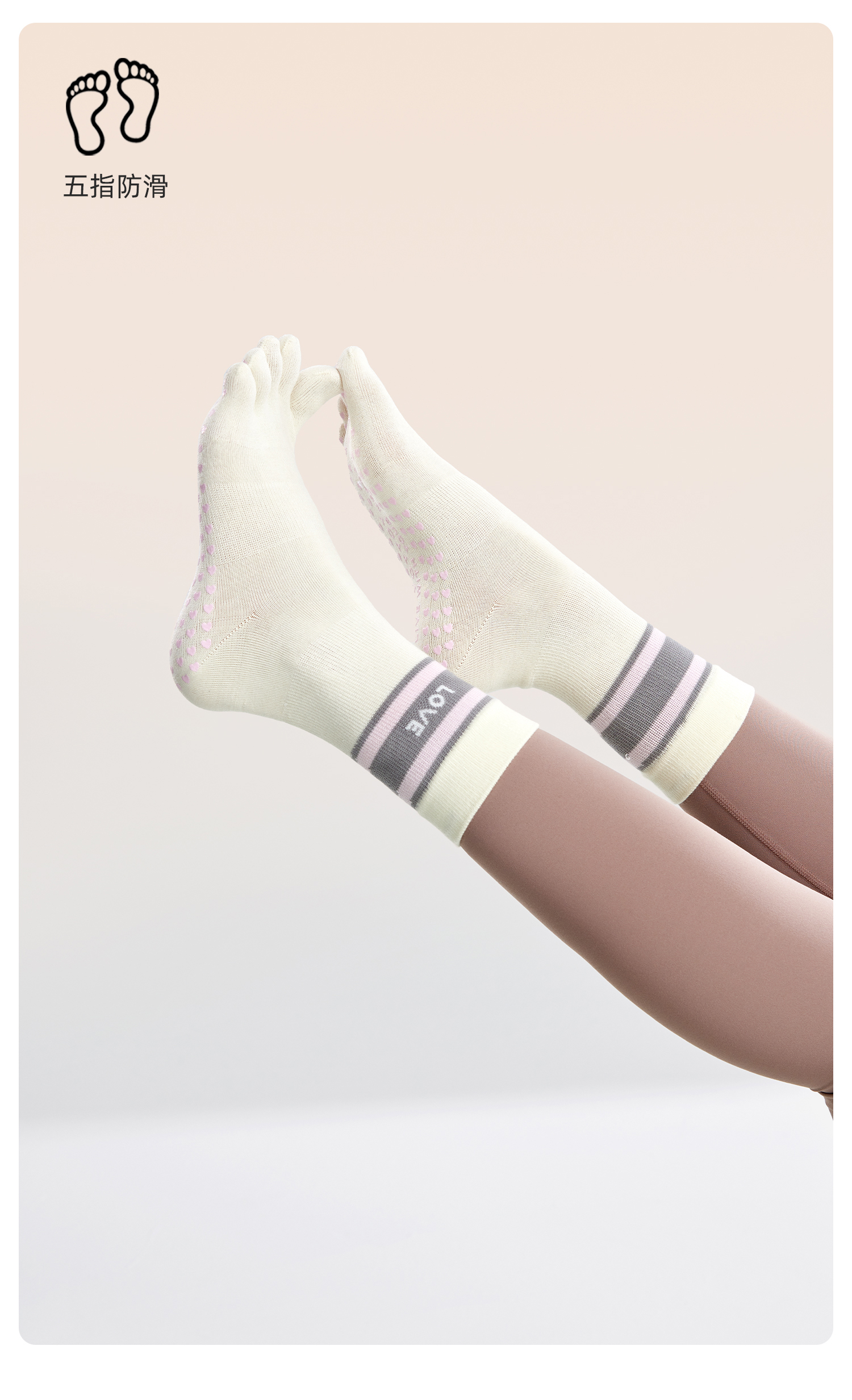 yottoy瑜珈襪女專業普拉提襪子防滑襪五指襪中筒襪瑜珈運動秋冬