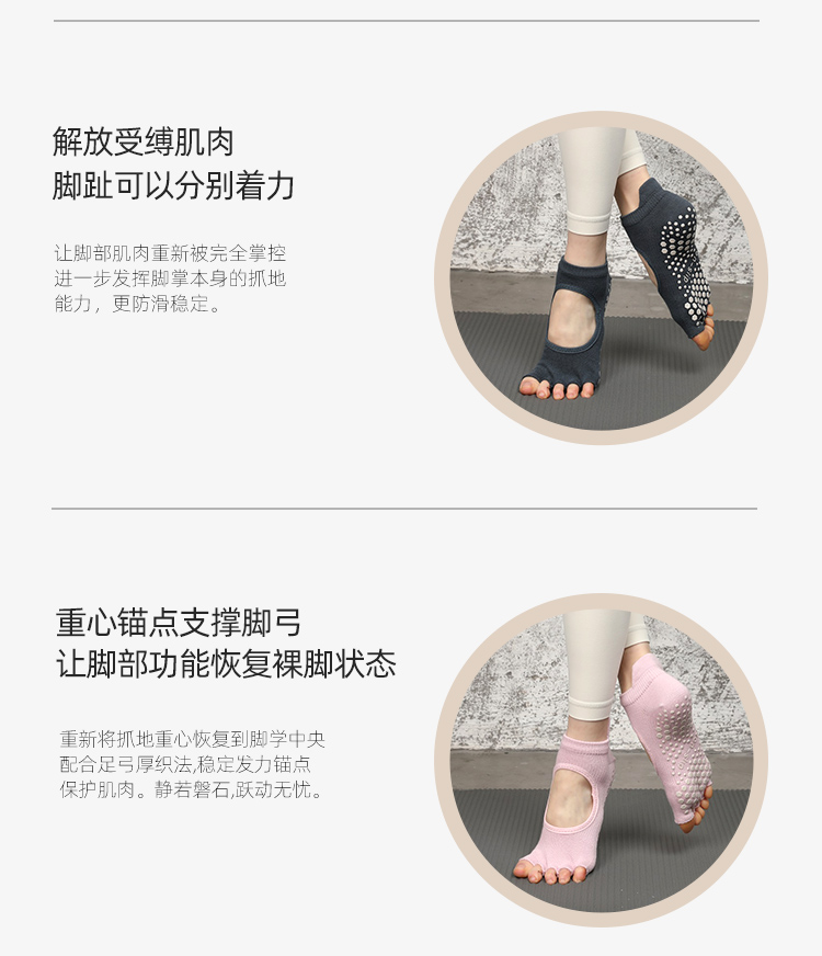 瑜珈襪子防滑專業女五指襪普拉提襪子瑜珈防滑襪運動短襪露背春季