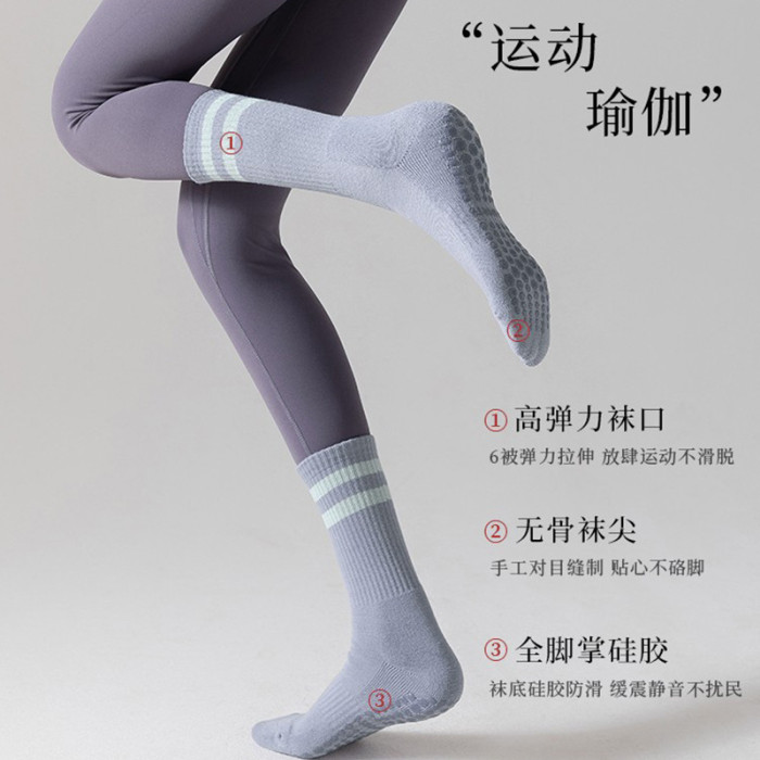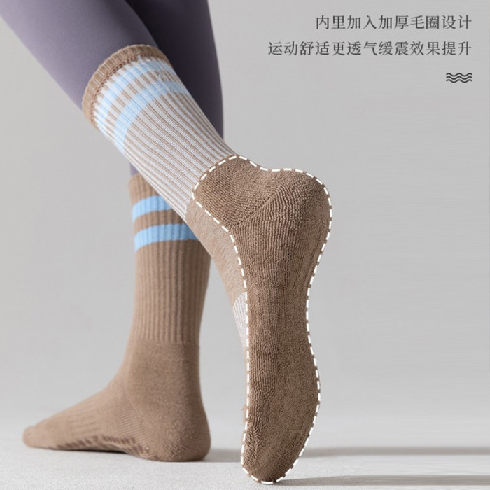 多肉女孩瑜珈襪防滑普拉提中筒壓力襪純棉運動毛圈健身成人中筒襪