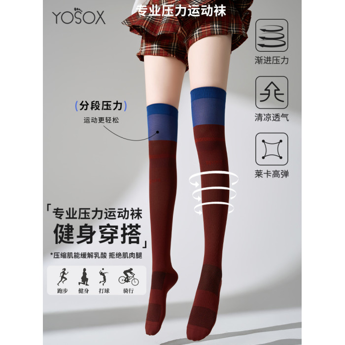 過膝襪壓力瘦腿長筒襪女款跑步跳繩羽毛球襪爬山瑜珈劃船健身網球