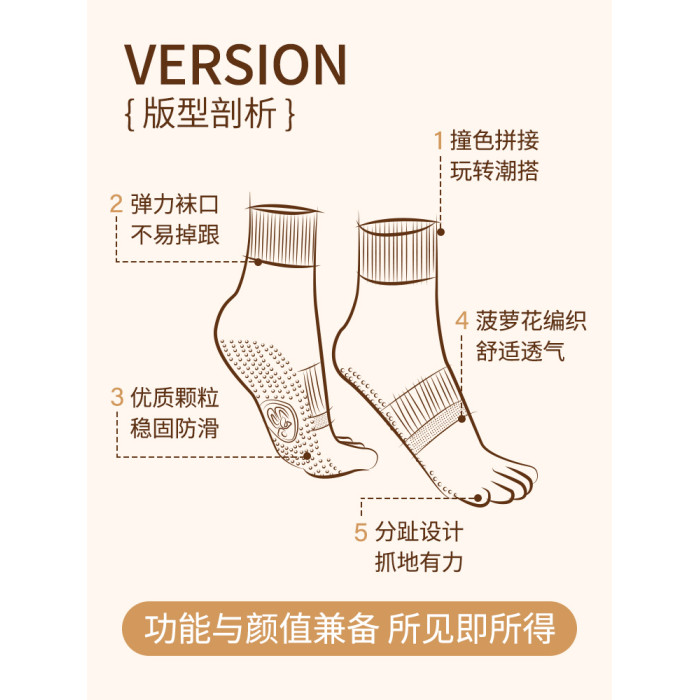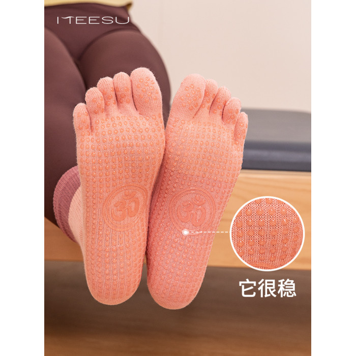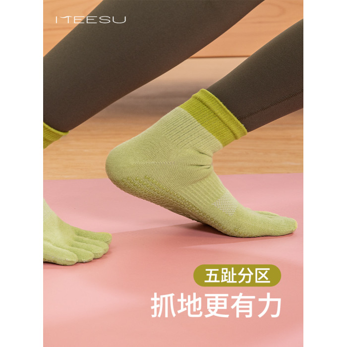 美愫撞色瑜珈襪子中筒普拉提精梳棉室內運動防滑五指襪瑜珈長襪女