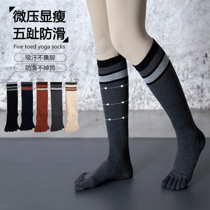 秋冬長筒防滑瑜珈襪女純色棉健身運動五指襪ins潮百搭普拉提襪子