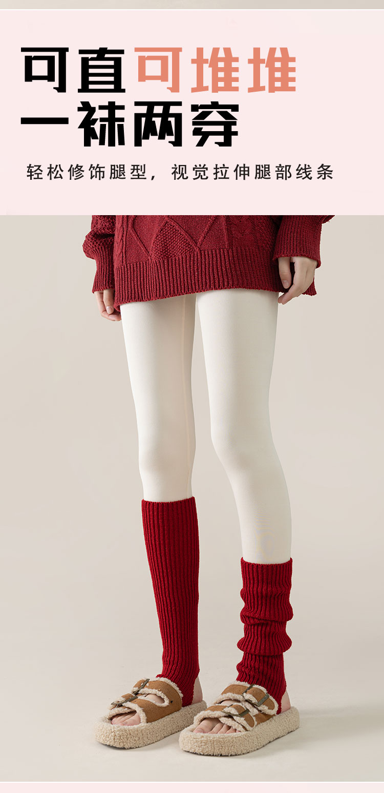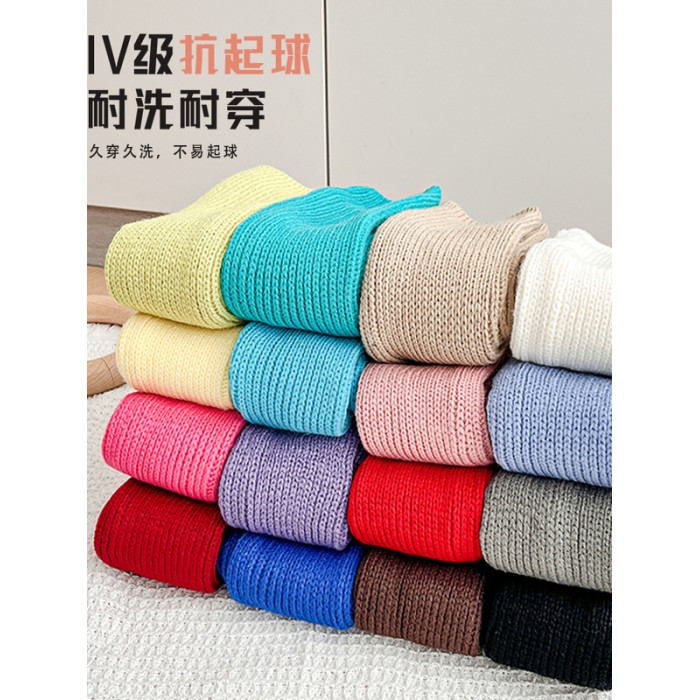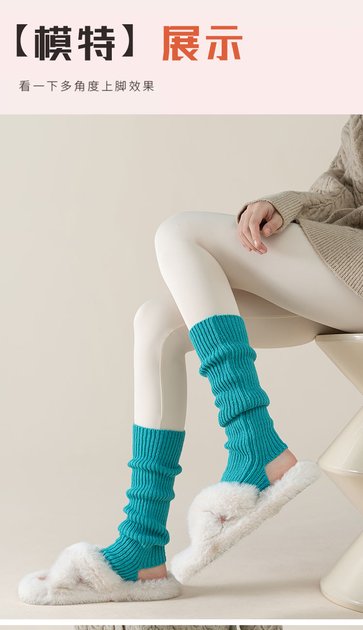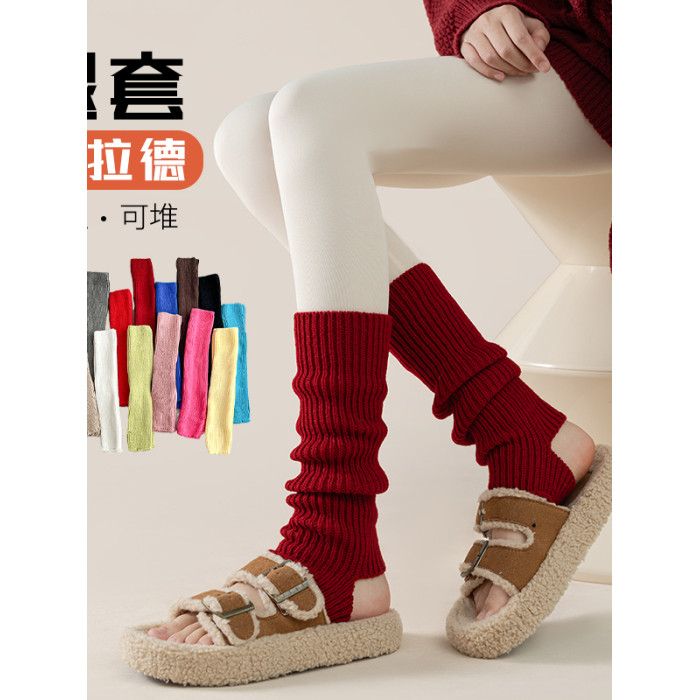 瑜珈秋冬保暖堆堆襪套純色粗線後跟JK學院風Y2K少女日系黃色