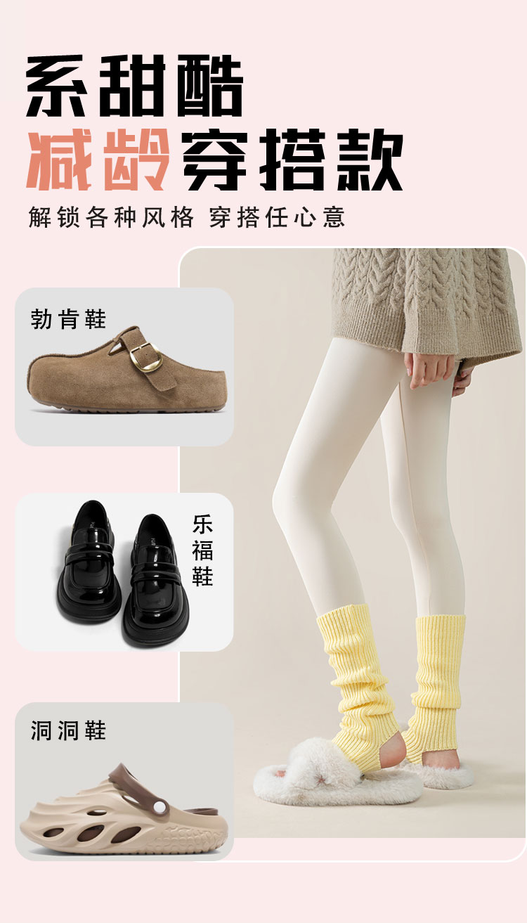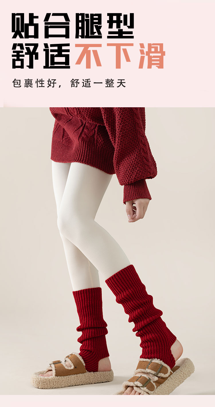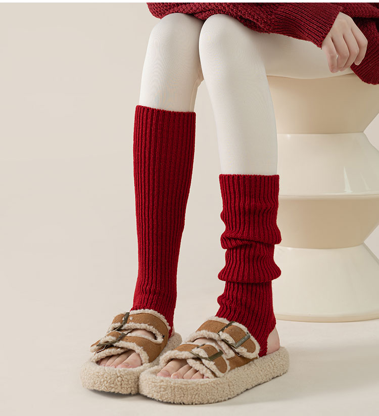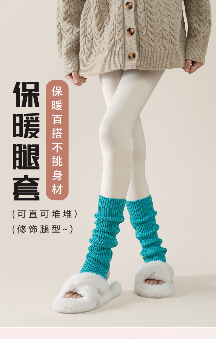 瑜珈秋冬保暖堆堆襪套純色粗線後跟JK學院風Y2K少女日系黃色