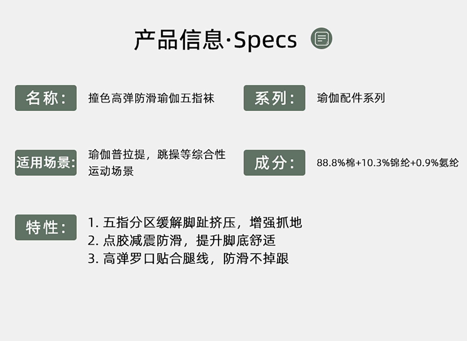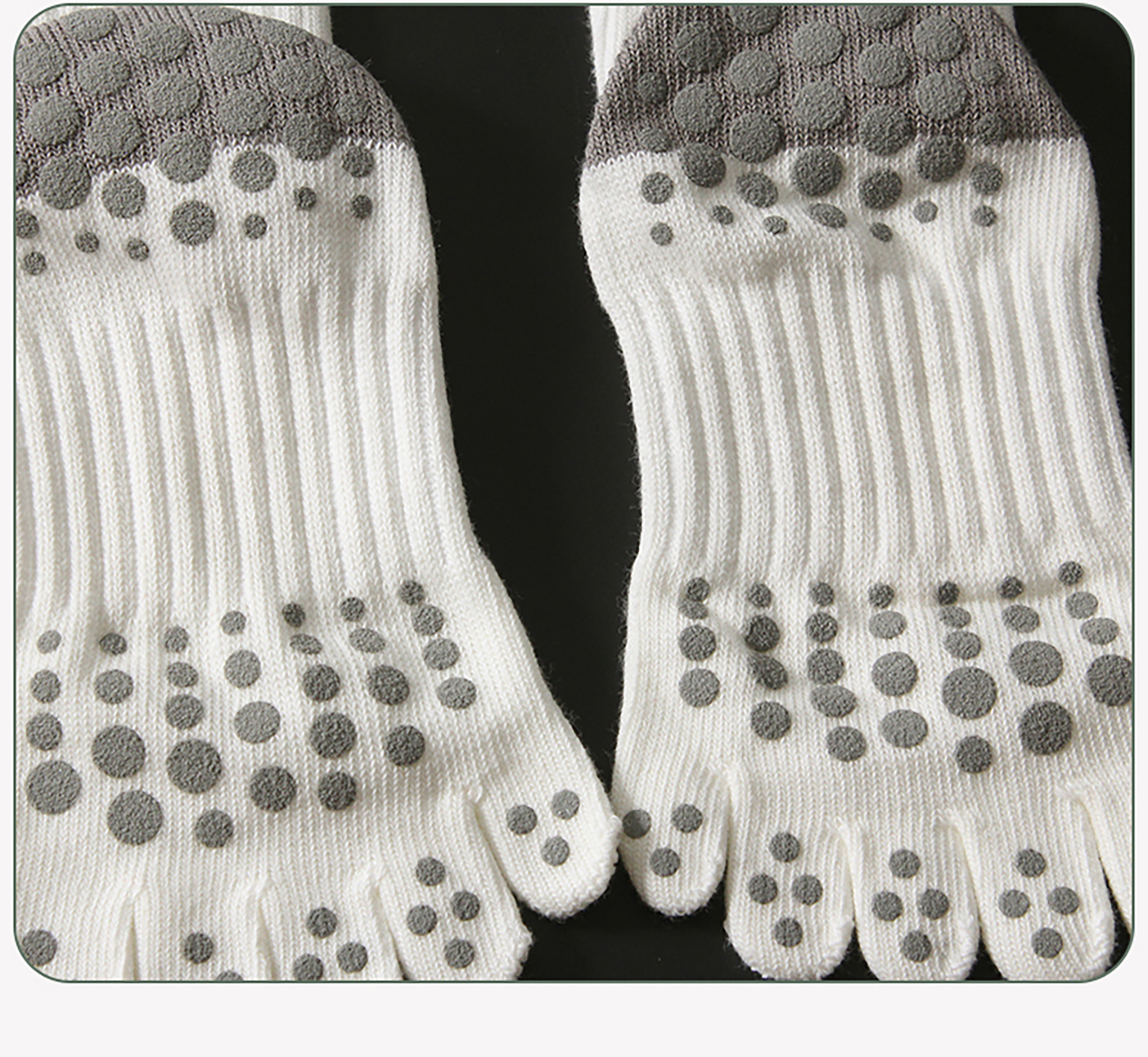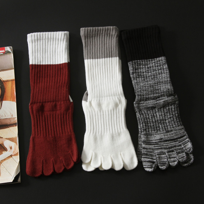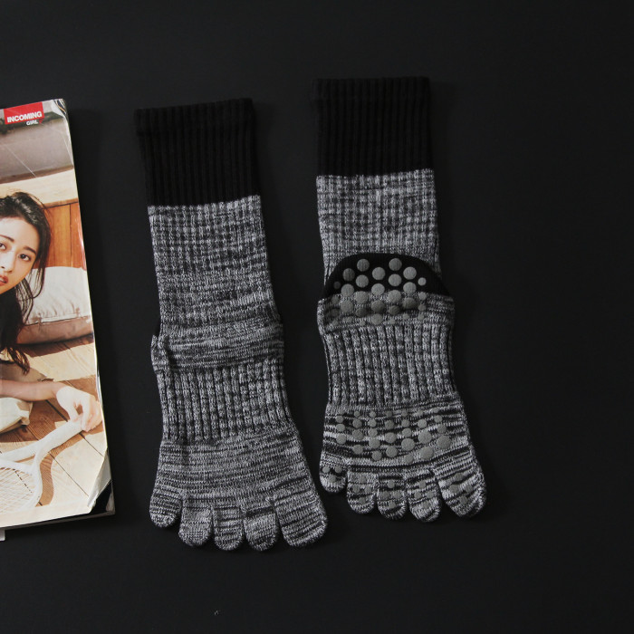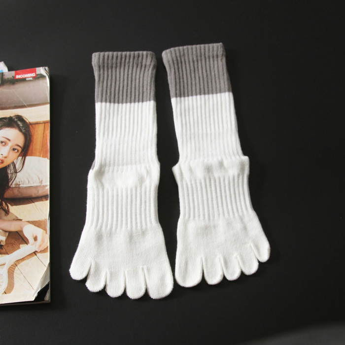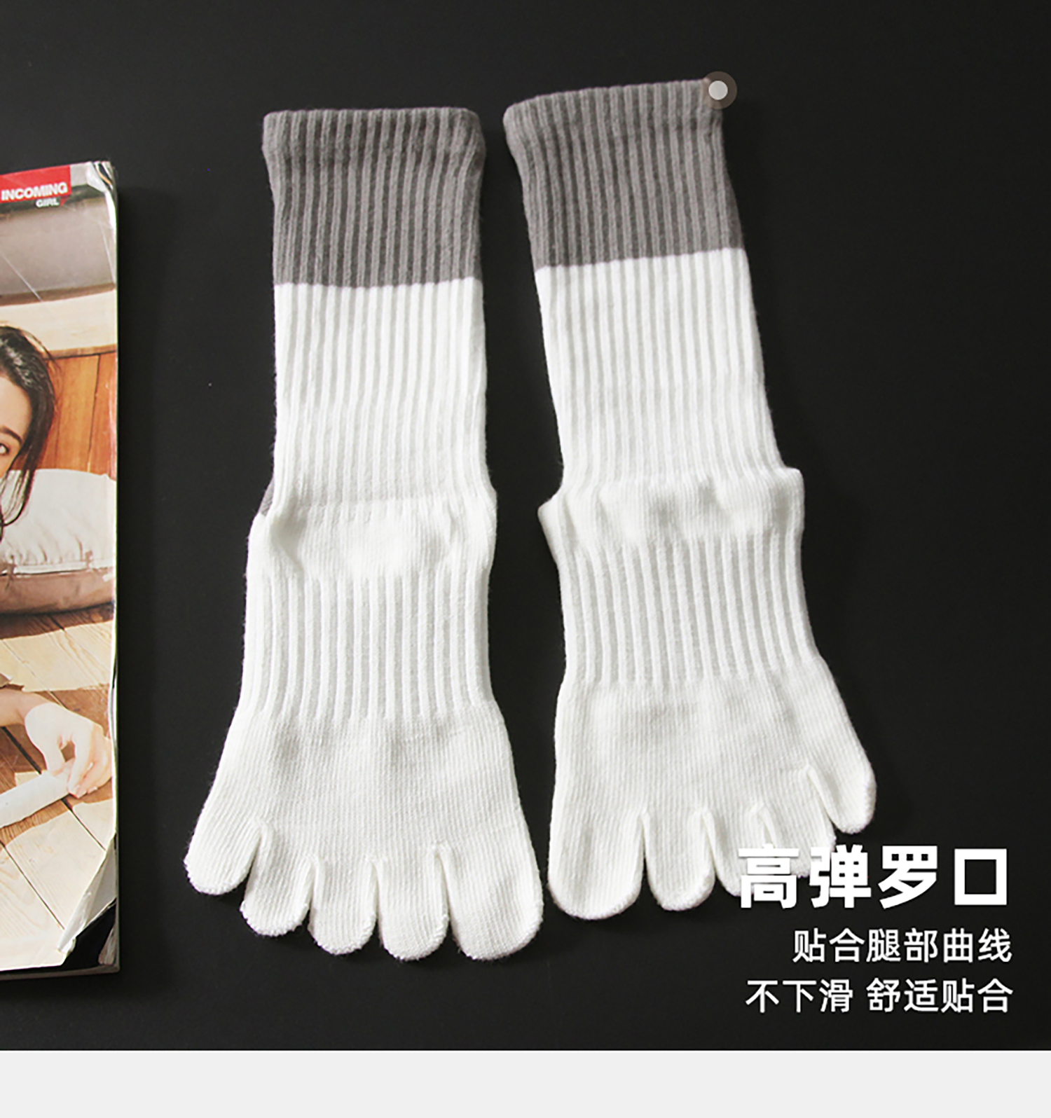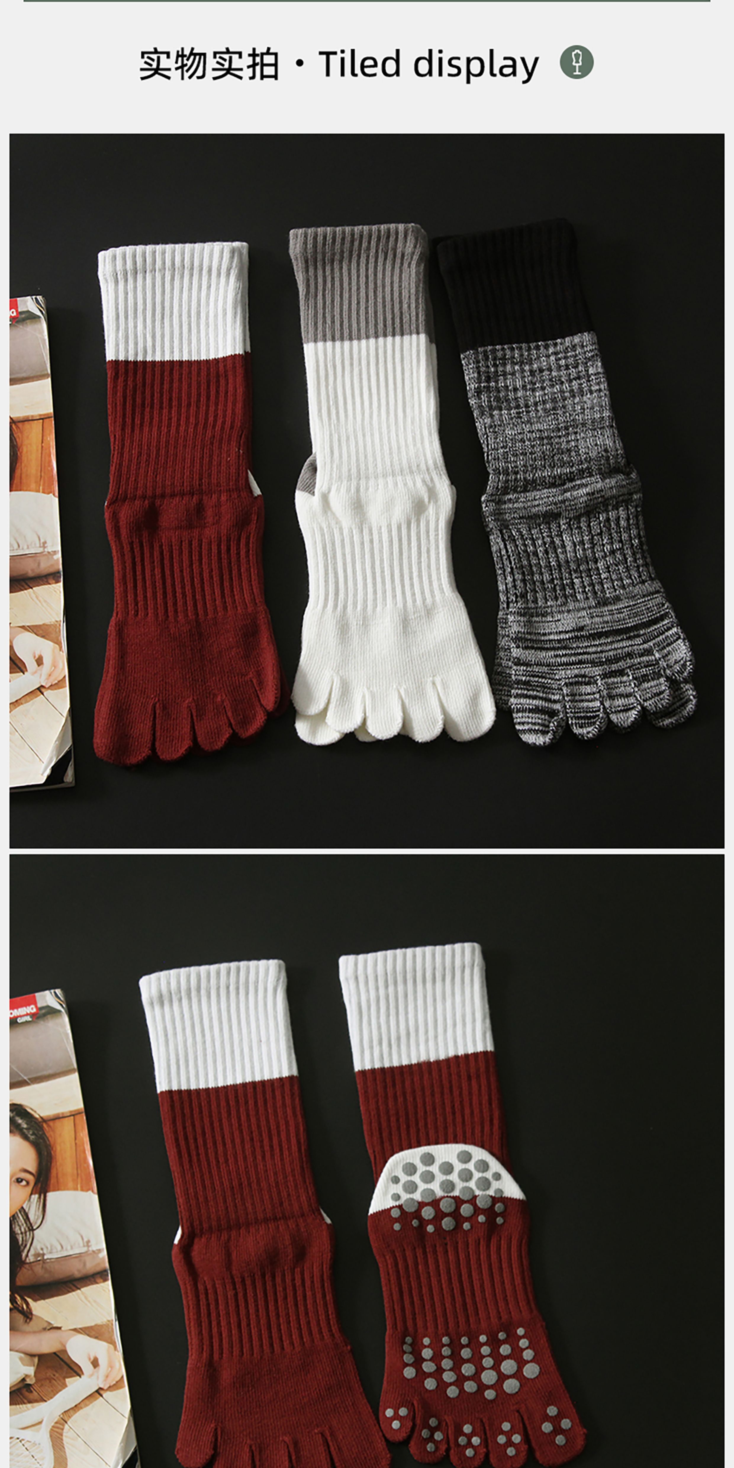 撞色羅紋防滑減震高彈棉質普拉提瑜珈五指中筒襪