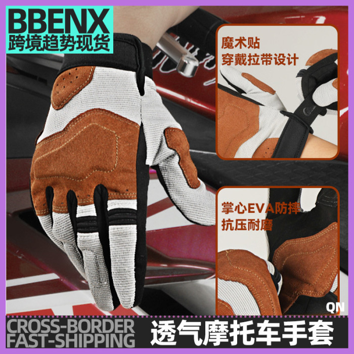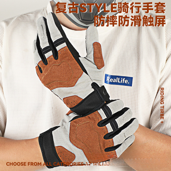 摩托車騎行手套男夏季復古哈雷手套機車騎士裝備透氣防摔騎車手套