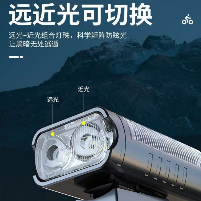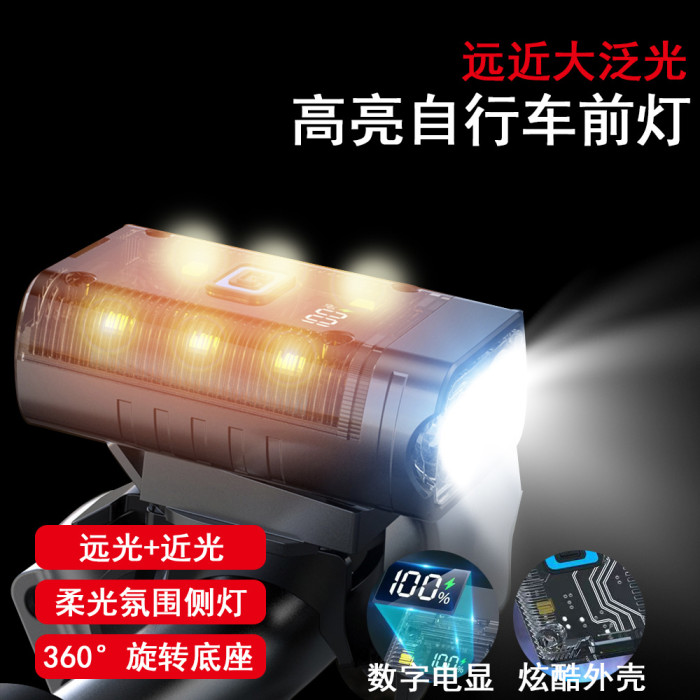 2024新款自行車雙T6遠近光前燈帶數字顯示360°可旋轉騎行氛圍燈