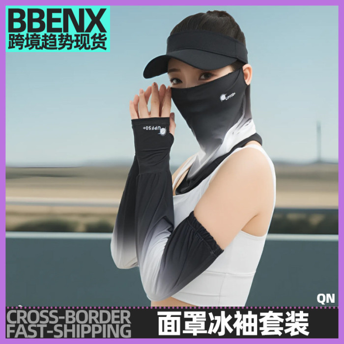 夏季開車騎行防曬冰袖面罩組合套裝戶外防紫外線出行登山遮臉面紗