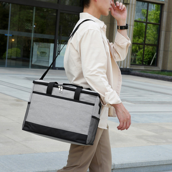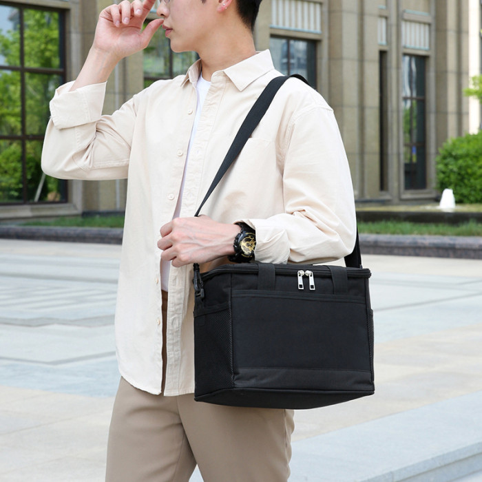 新款雙層牛津布手提保溫包加厚戶外野餐包肩帶手拎便當包冰包