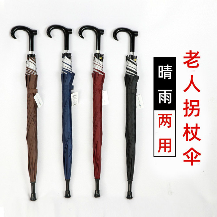 長柄手杖柺棍雨繖純色多功能老人柺杖繖加長防風太陽繖登山繖