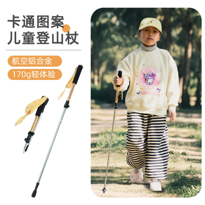 卡通兒童登山杖戶外伸縮杖可攜式超輕鋁合金折曡杖露營爬山徒步杖