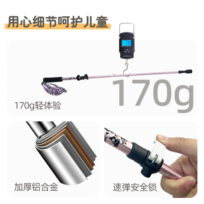 7075鋁合金兒童登山杖超輕折曡杖戶外可攜式卡通伸縮杖爬山徒步杖