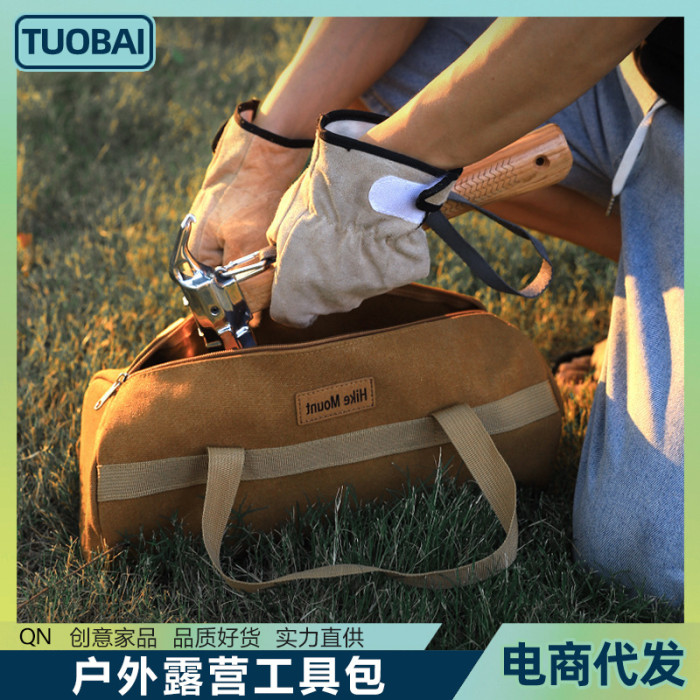 戶外露營工具包圓筒手拎地釘袋可攜式整理包風繩地釘鎚收納包手提袋