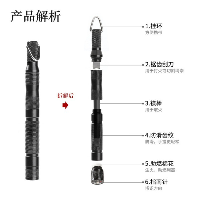 戶外打火石野營求生合金刮片指南針多功能取火鎂條棒取火棒打火棒