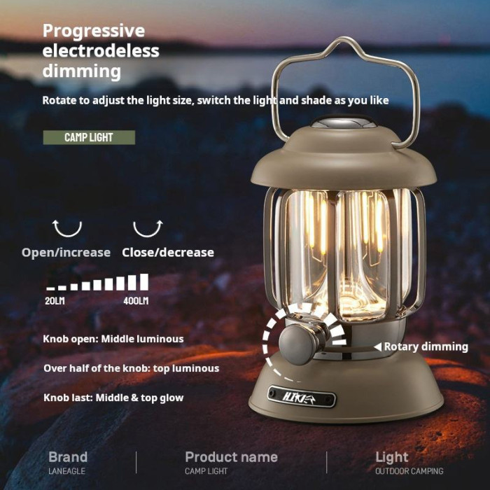 多功能復古露營燈戶外防水雙光源typy-c充電手提燈氛圍燈超長續航