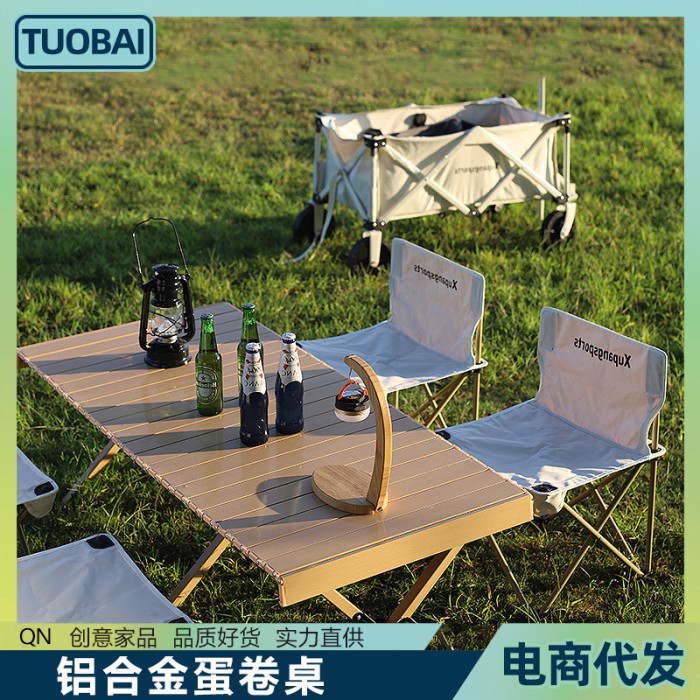 全鋁合金蛋卷桌可攜式折曡桌椅超輕折曡桌子聚餐室外營地木紋桌椅