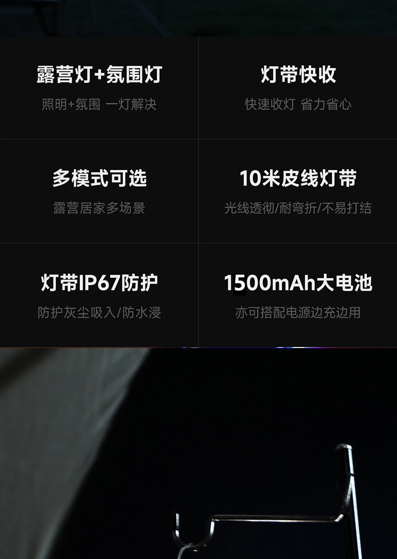 露營燈led燈帶戶外帳篷營地氛圍天幕燈充電式超長續航卷尺燈