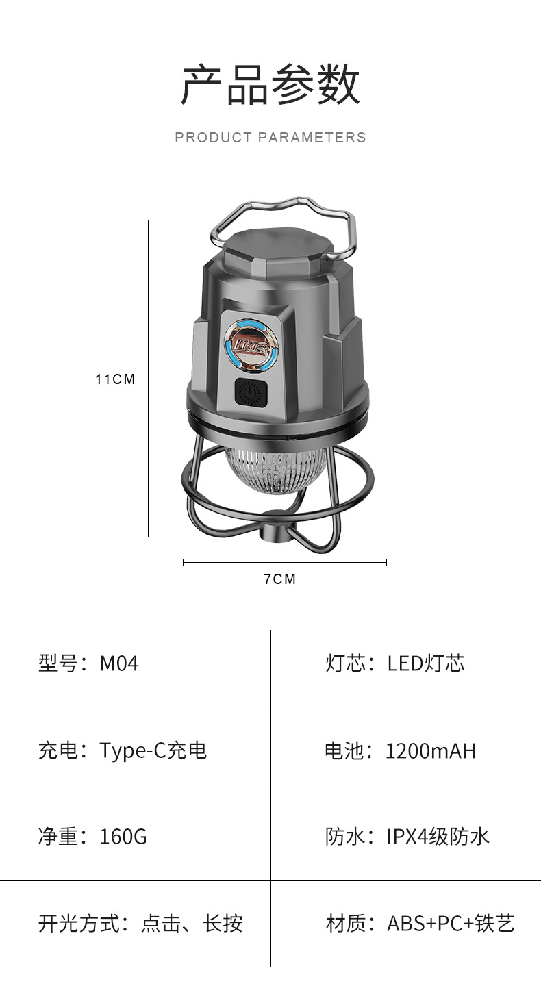 新款迷你可攜式戶外露營燈type-c充電款防水野營燈室氛圍燈帶鍾表