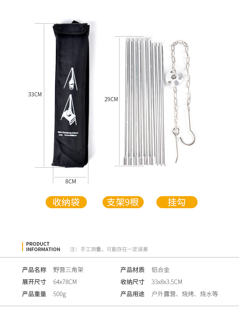 JR戶外野營篝火架露營野餐可攜式折曡三腳架鋁合金三角吊架吊鍋支架