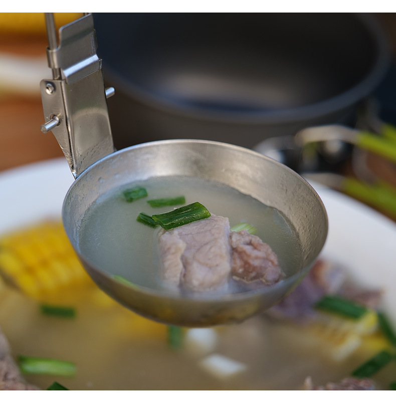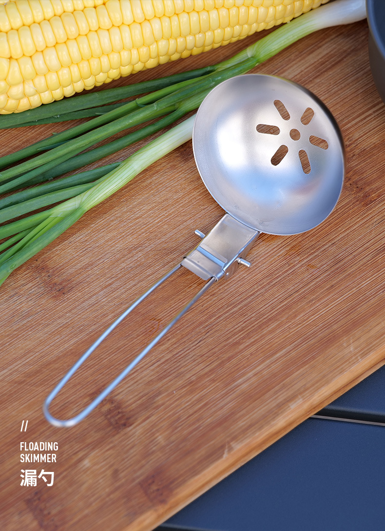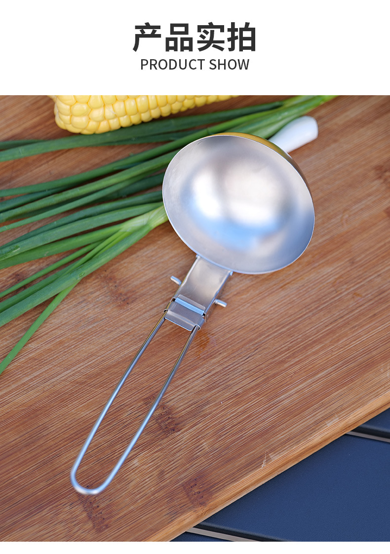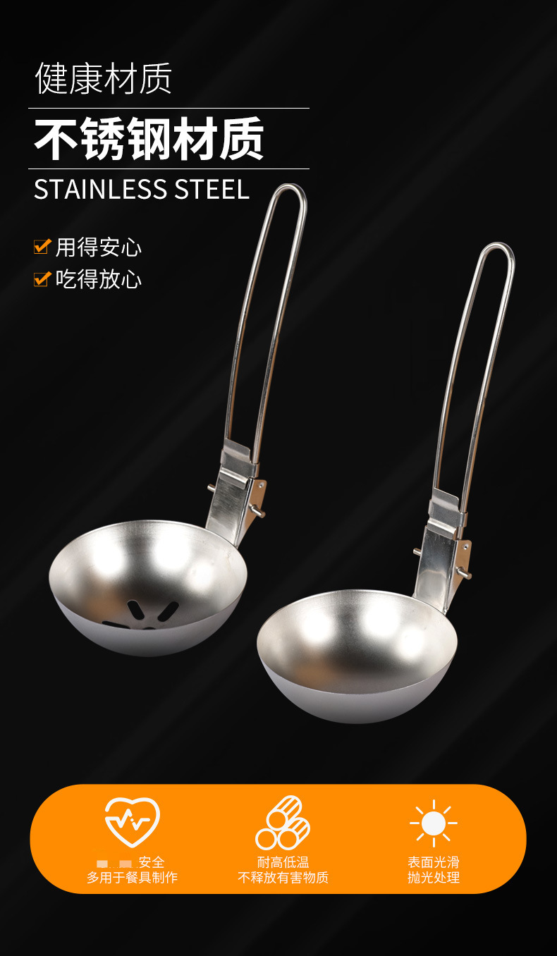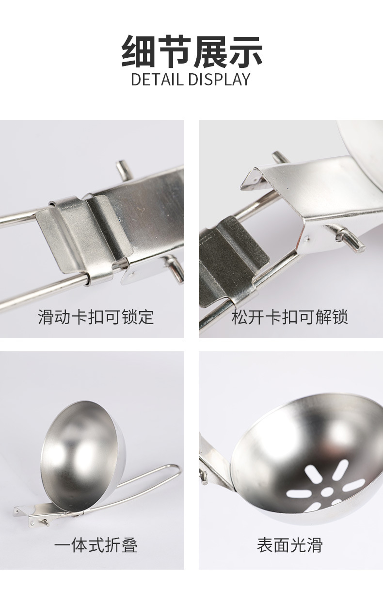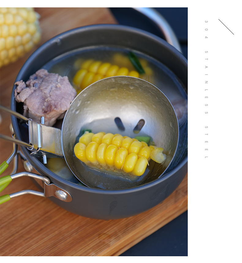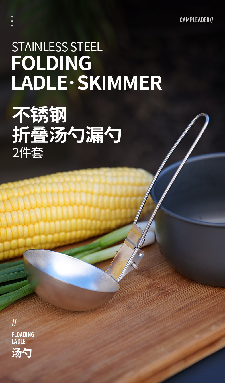 JR戶外不鏽鋼餐具登山野營露營旅行野炊湯勺漏勺可折曡兩件套炊具