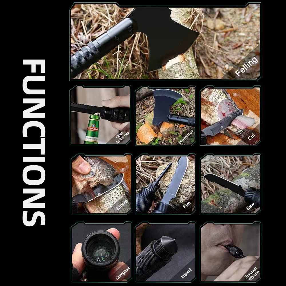 JR戶外多功能斧子野營露營可攜式斧頭伐木砍柴生火指南針開瓶器口哨
