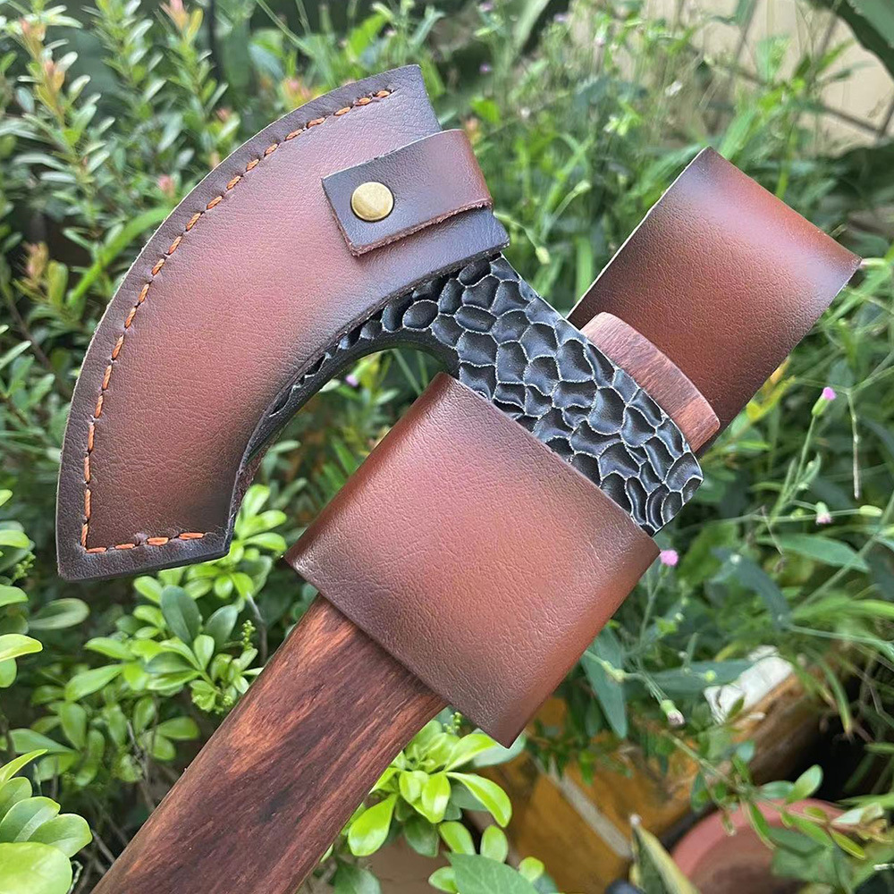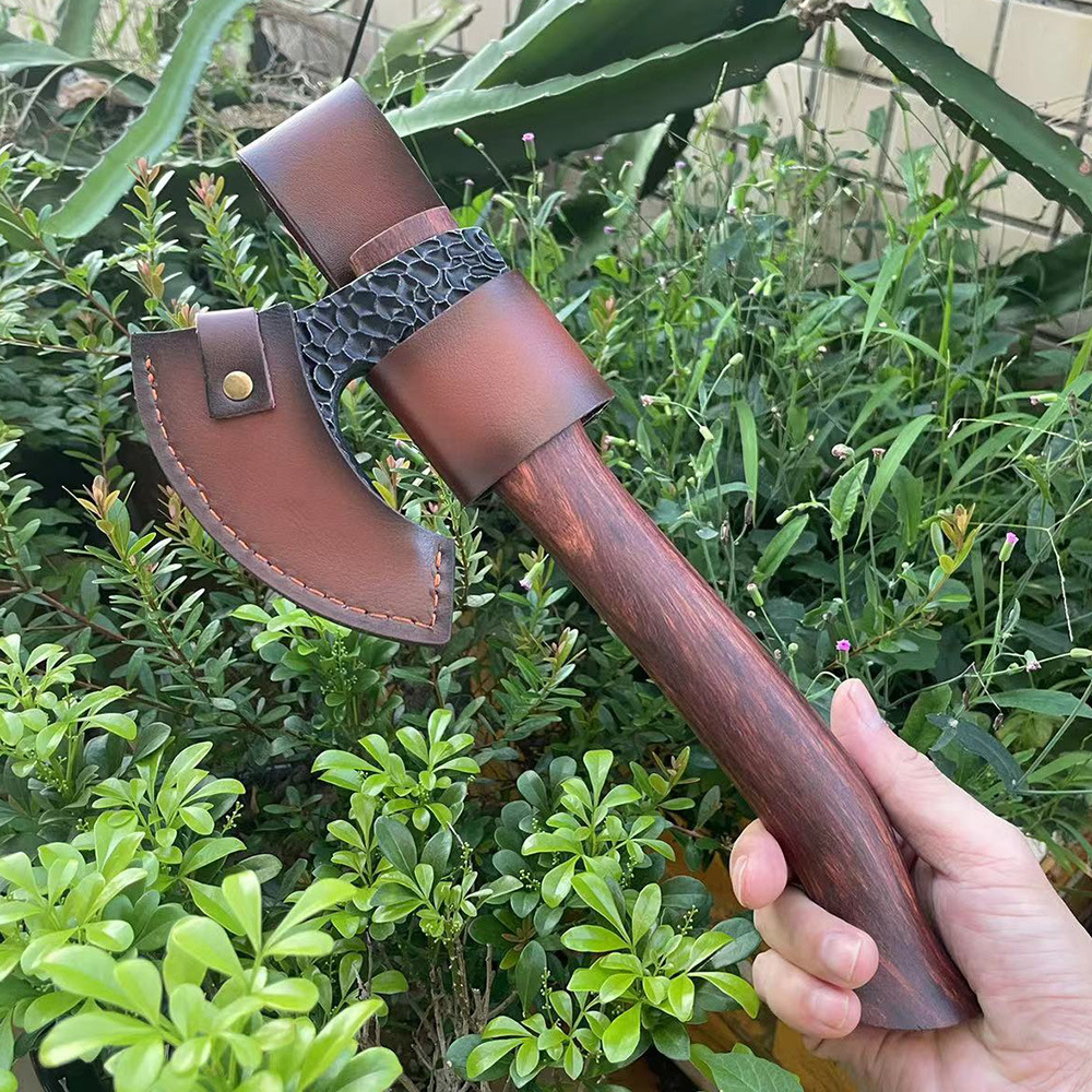 JR戶外露營小斧頭手工鍛打微粒黃檀木柄工兵斧頭野營野炊砍骨砍木