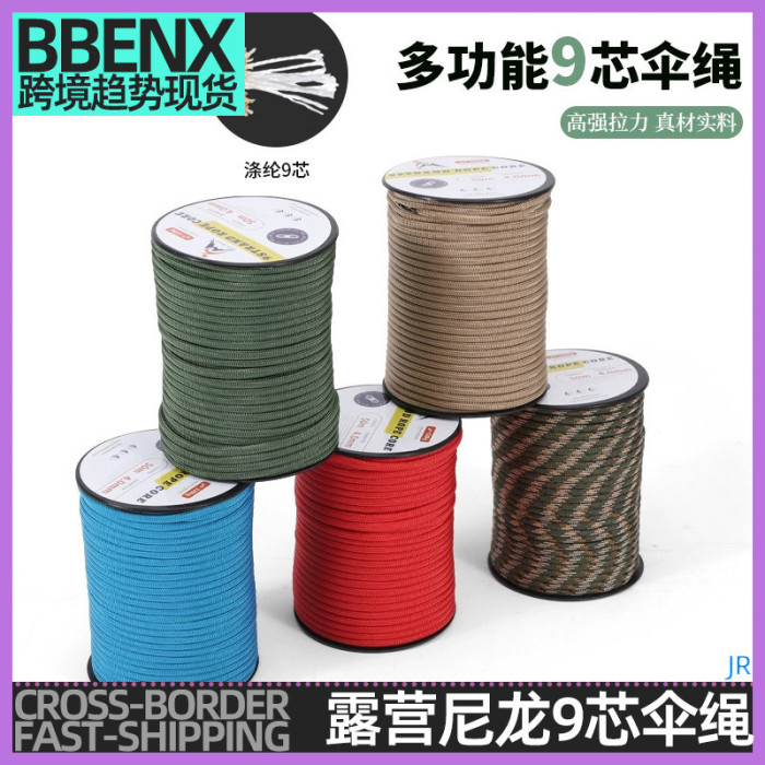 JR露營尼龍9芯繖繩50M戶外生存應急防風繩帳篷天幕繩4mm加粗耐用