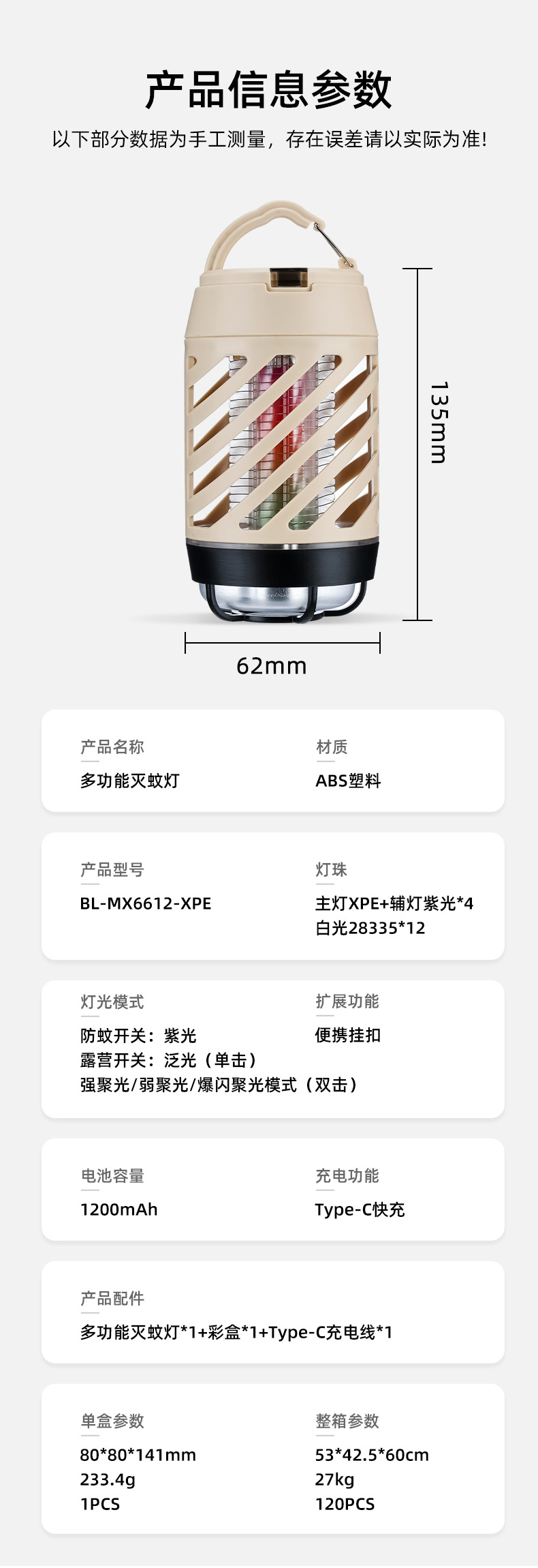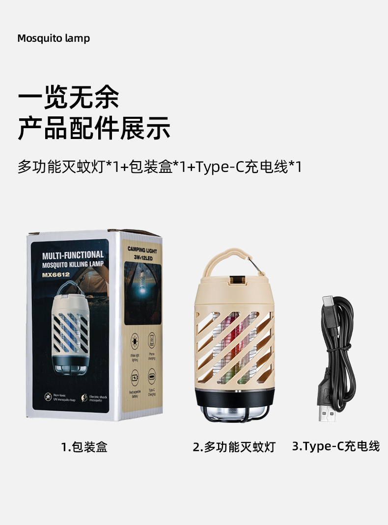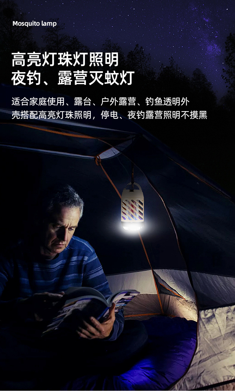 新款多功能滅蚊燈可充電戶外防水野營燈LED靜音無輻射帳篷捕蚊器