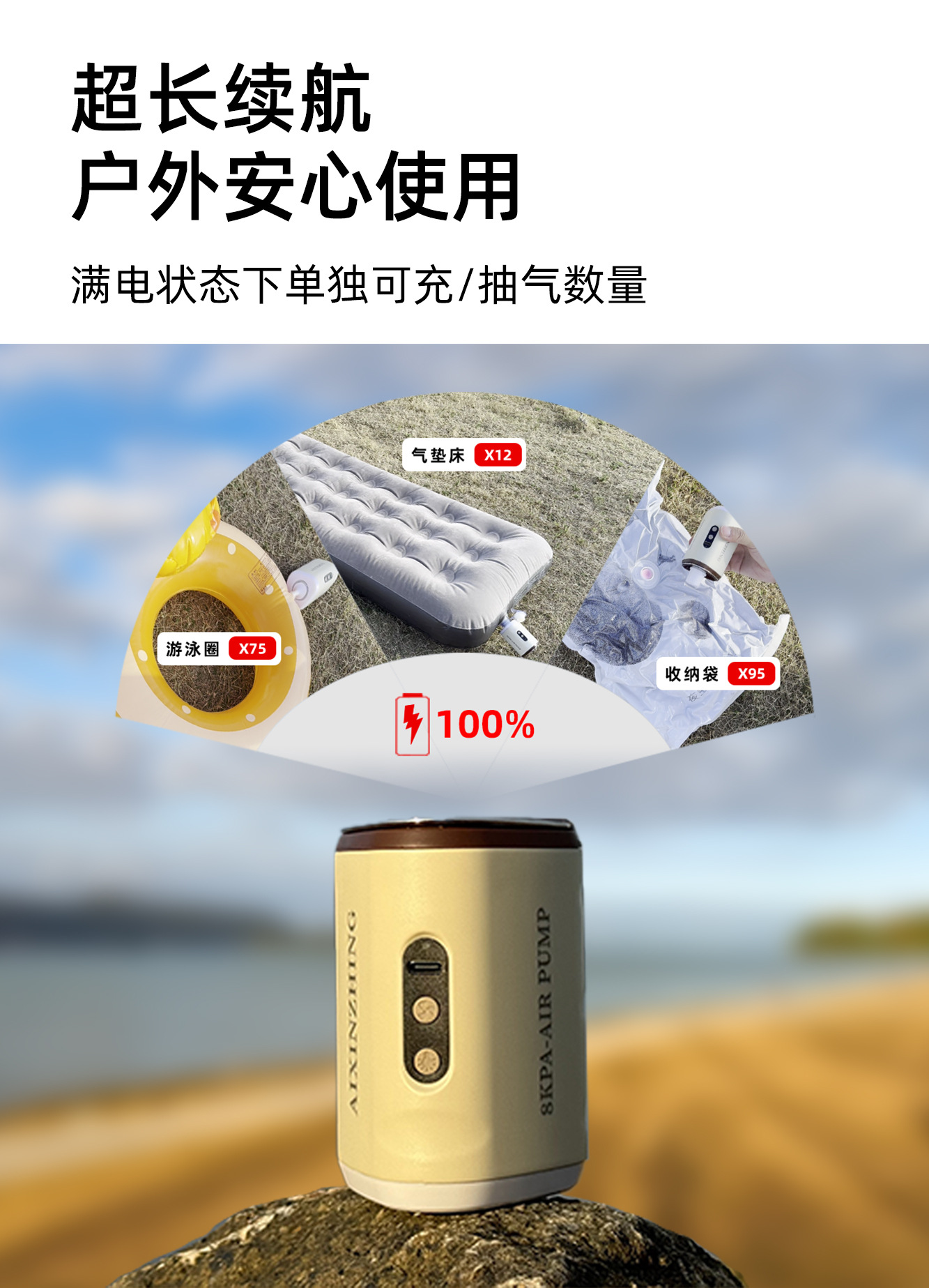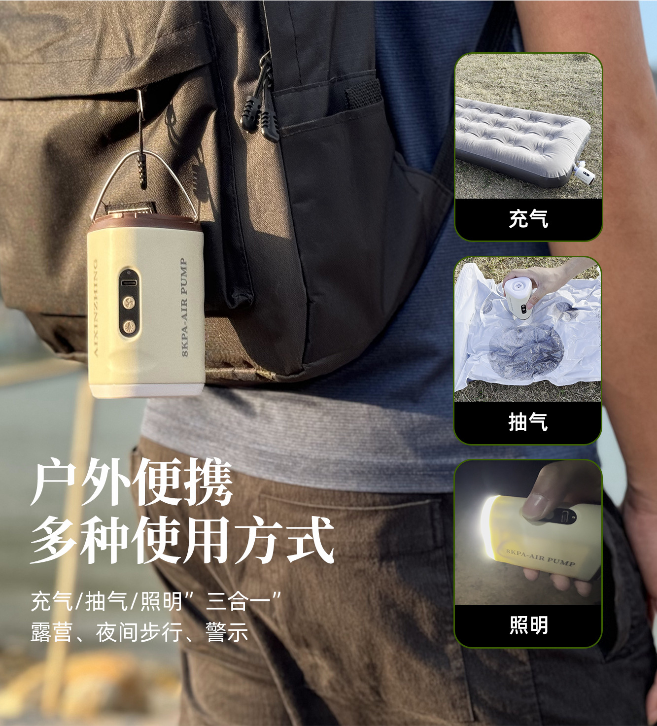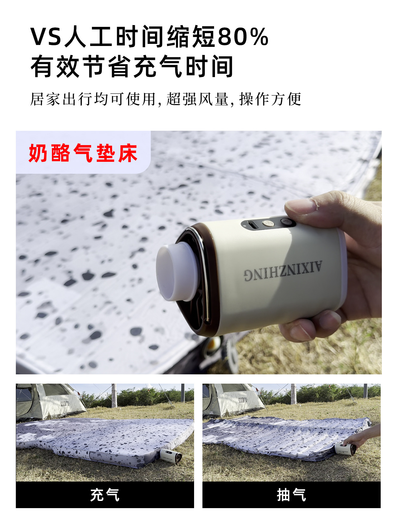JR無線抽充小氣泵戶外多功能可攜式電動迷你帶照明燈鋰電長續航氣墊