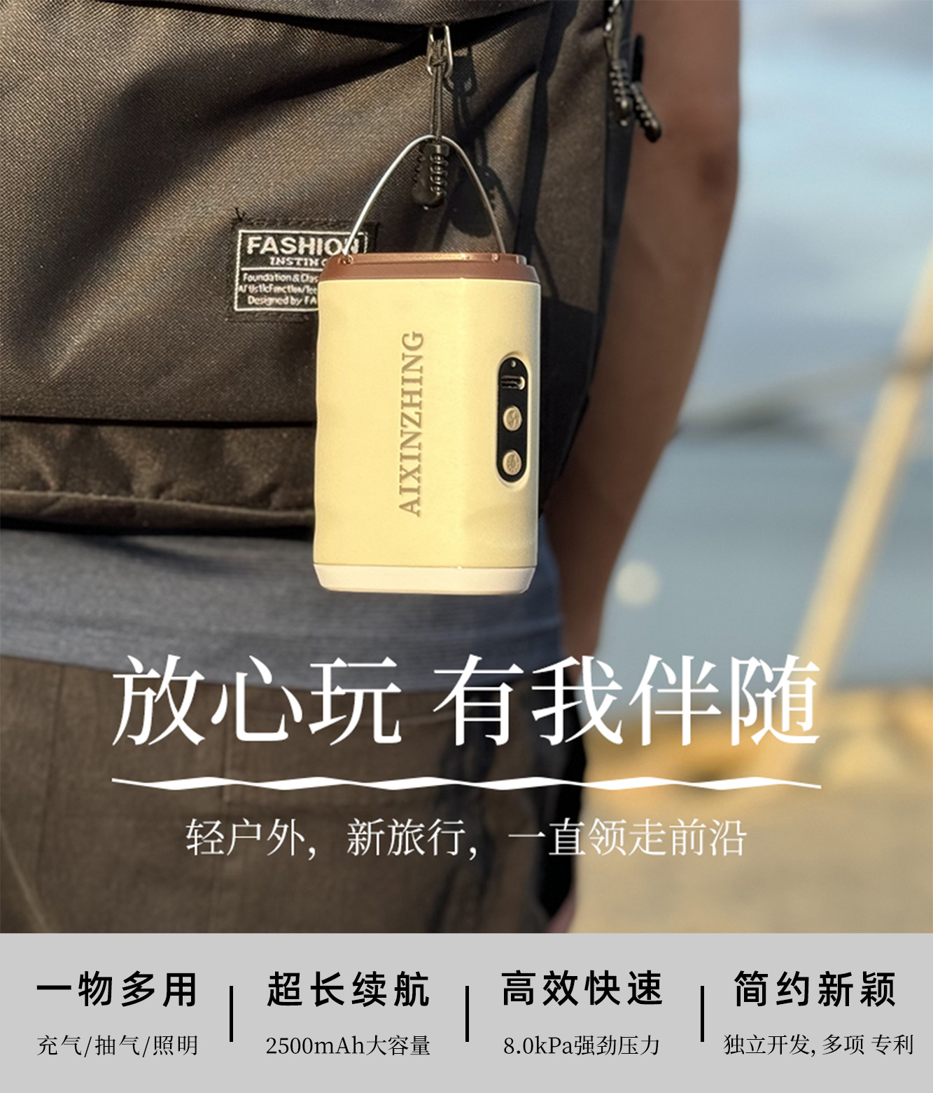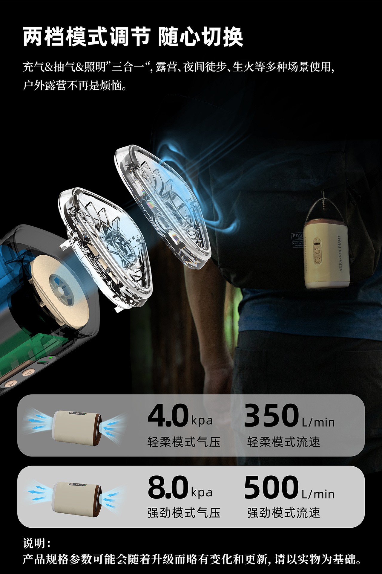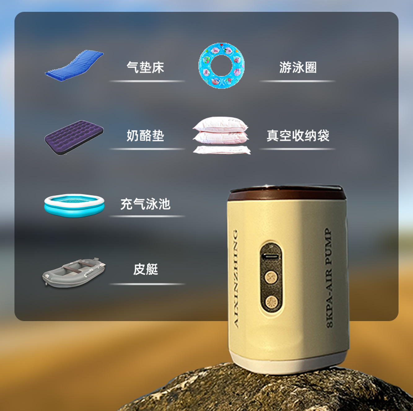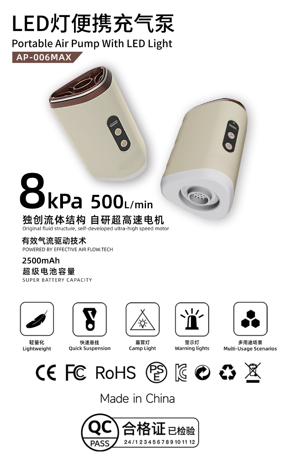 JR無線抽充小氣泵戶外多功能可攜式電動迷你帶照明燈鋰電長續航氣墊