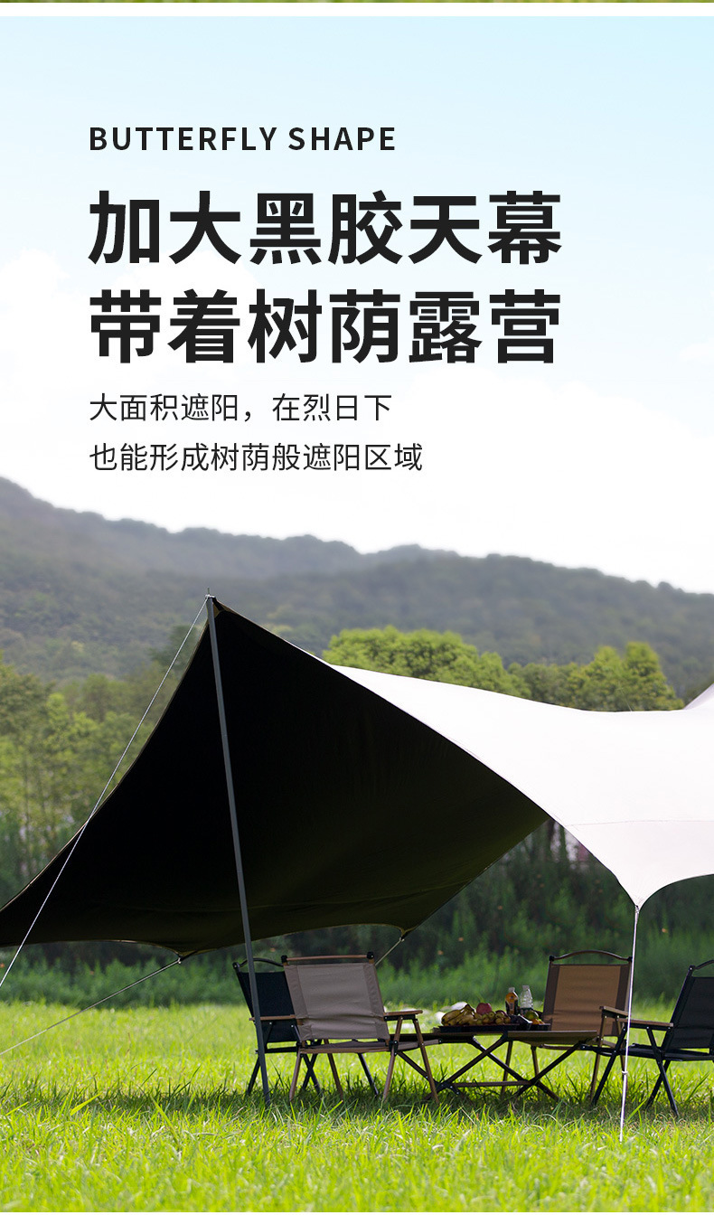 戶外休閒天幕帳篷蝶形露營野營裝備網紅必備野炊戶外娛樂黑膠天幕