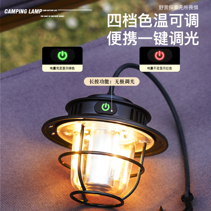 新款掛繩野營燈露營燈 戶外typec充電手提燈無極調光多色溫帳篷燈
