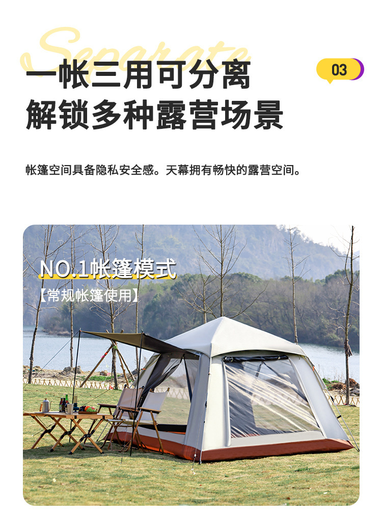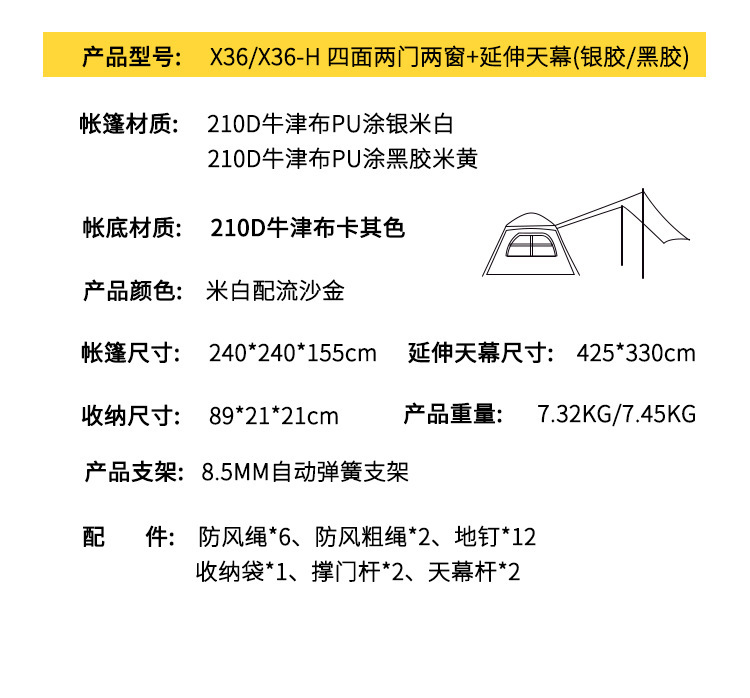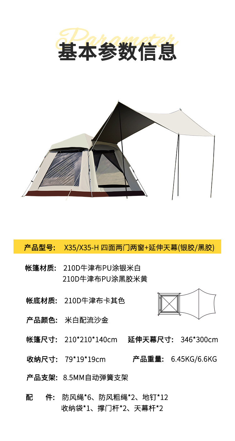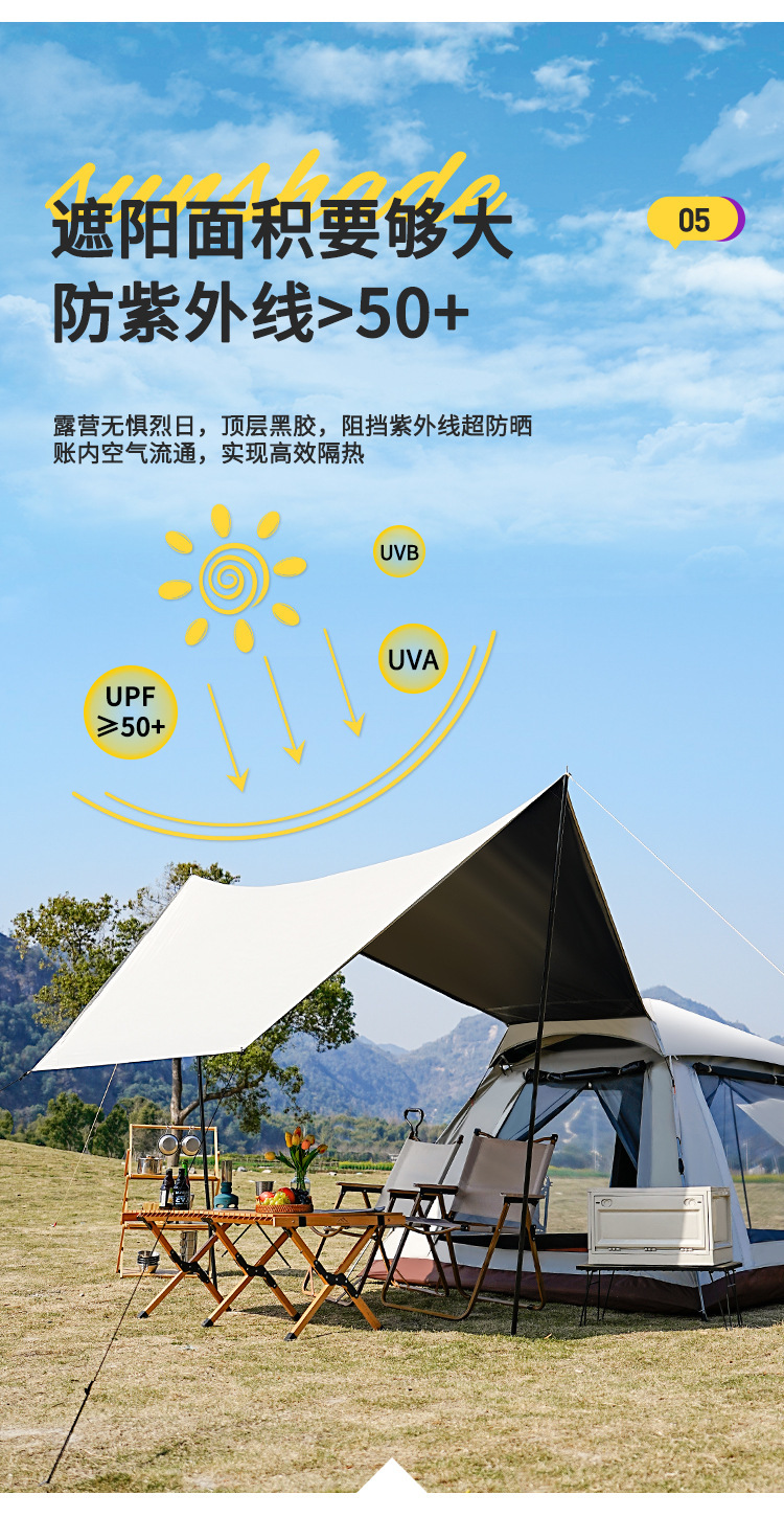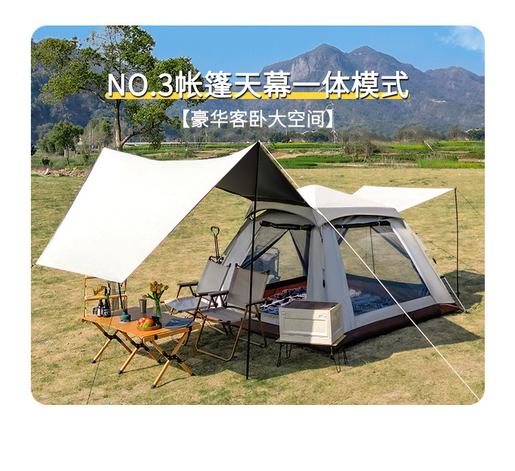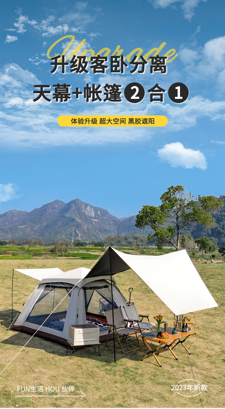 戶外新款四角帳篷加天幕二合一黑膠銀膠營地天幕露營帳篷全自動