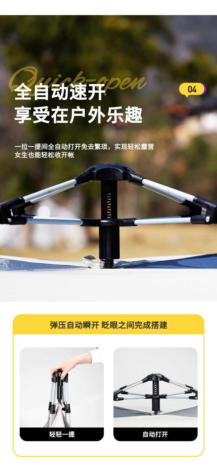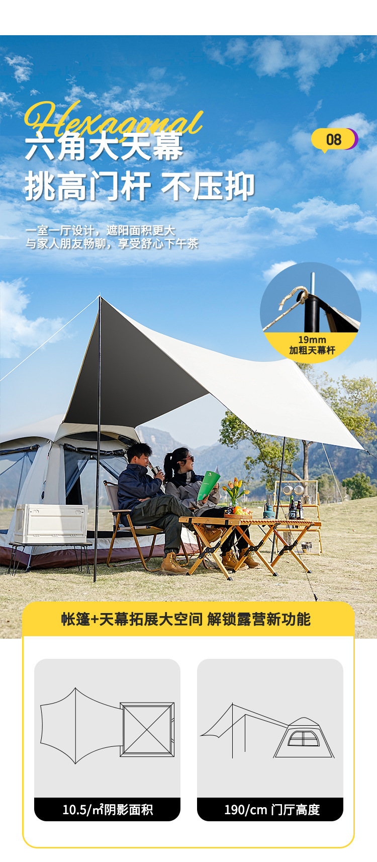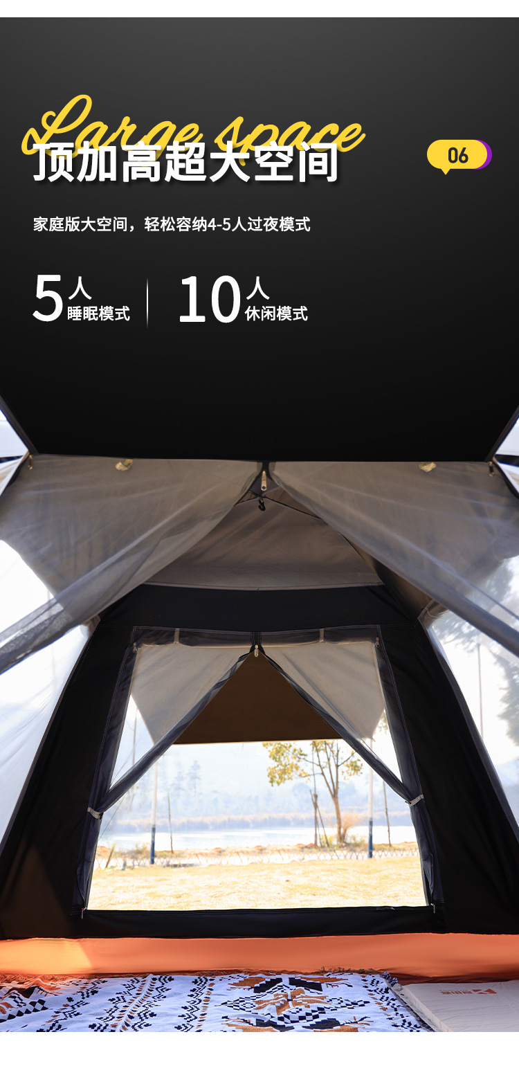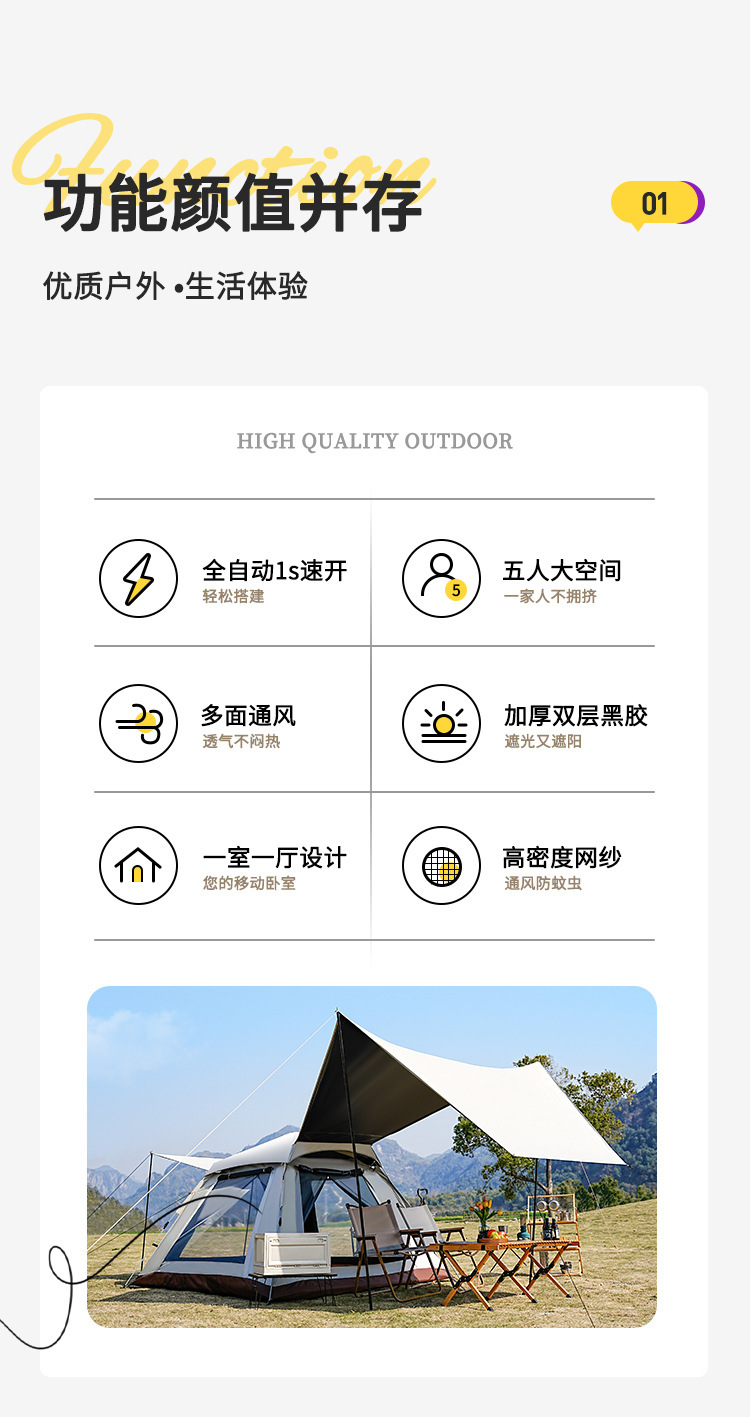 戶外新款四角帳篷加天幕二合一黑膠銀膠營地天幕露營帳篷全自動