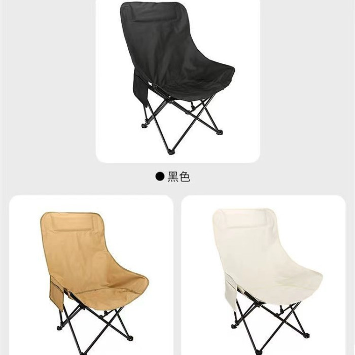 戶外高靠背折曡椅山地野營加棉躺椅月亮椅可攜式帶式釣魚凳
