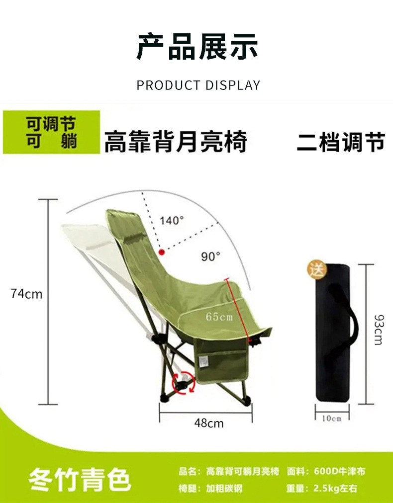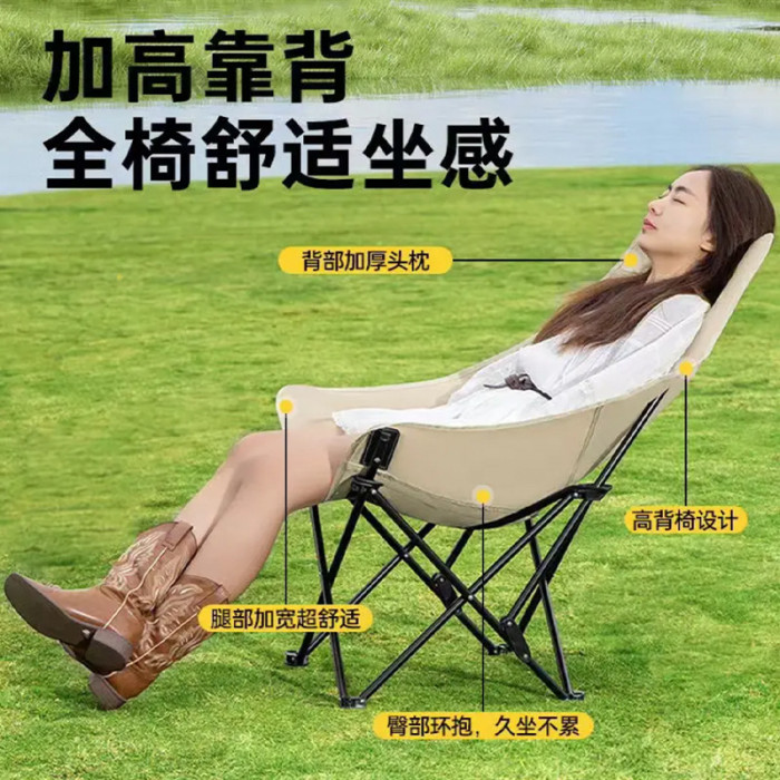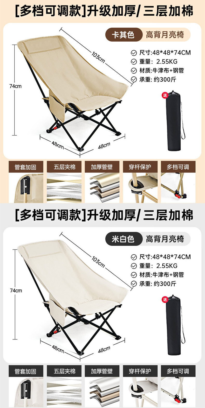 加高三檔可調節月亮椅可攜式收納戶外可躺折曡椅野餐露營釣魚凳
