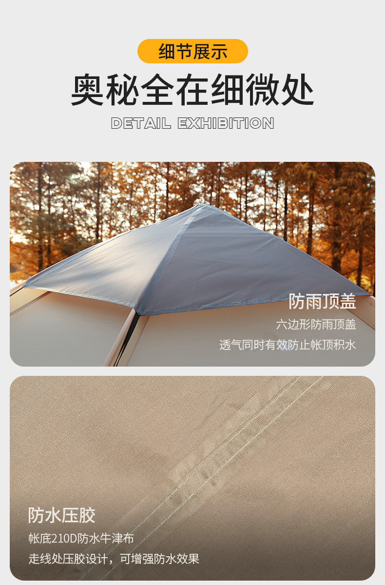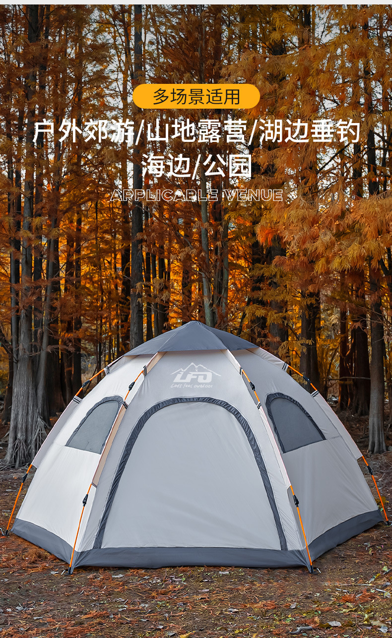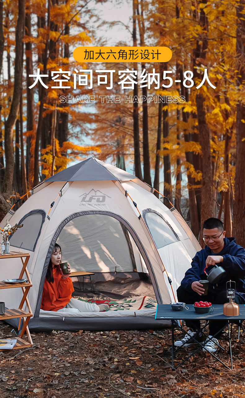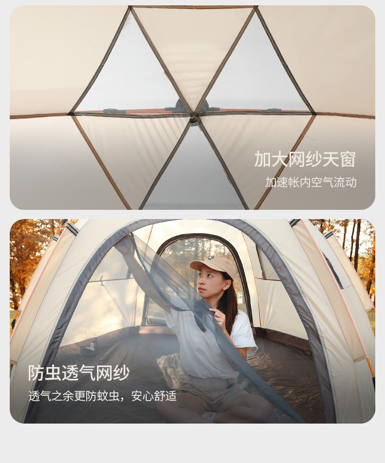 路放戶外野營全自動速開帳篷六角公園休閒帳篷多人沙灘遮陽露營帳