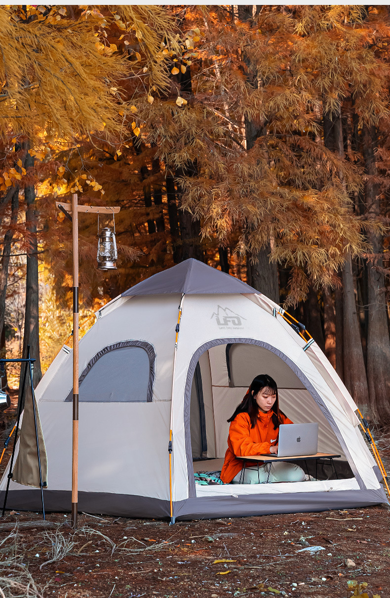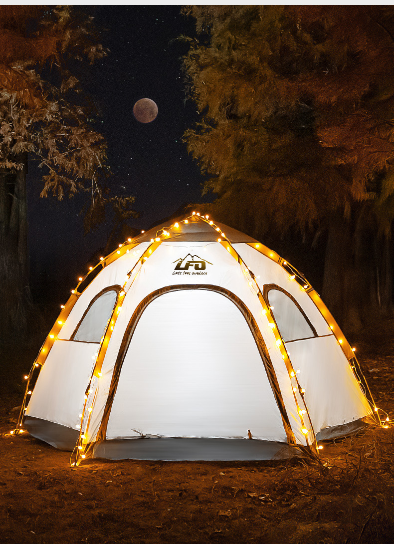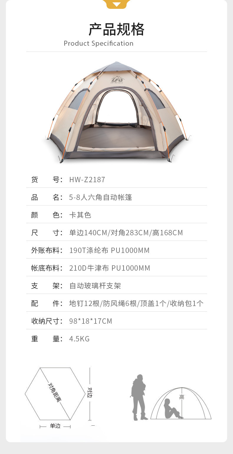 路放戶外野營全自動速開帳篷六角公園休閒帳篷多人沙灘遮陽露營帳