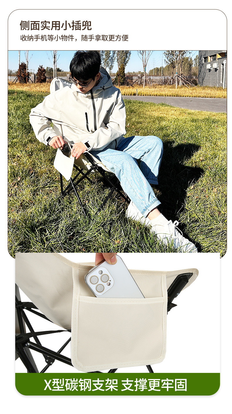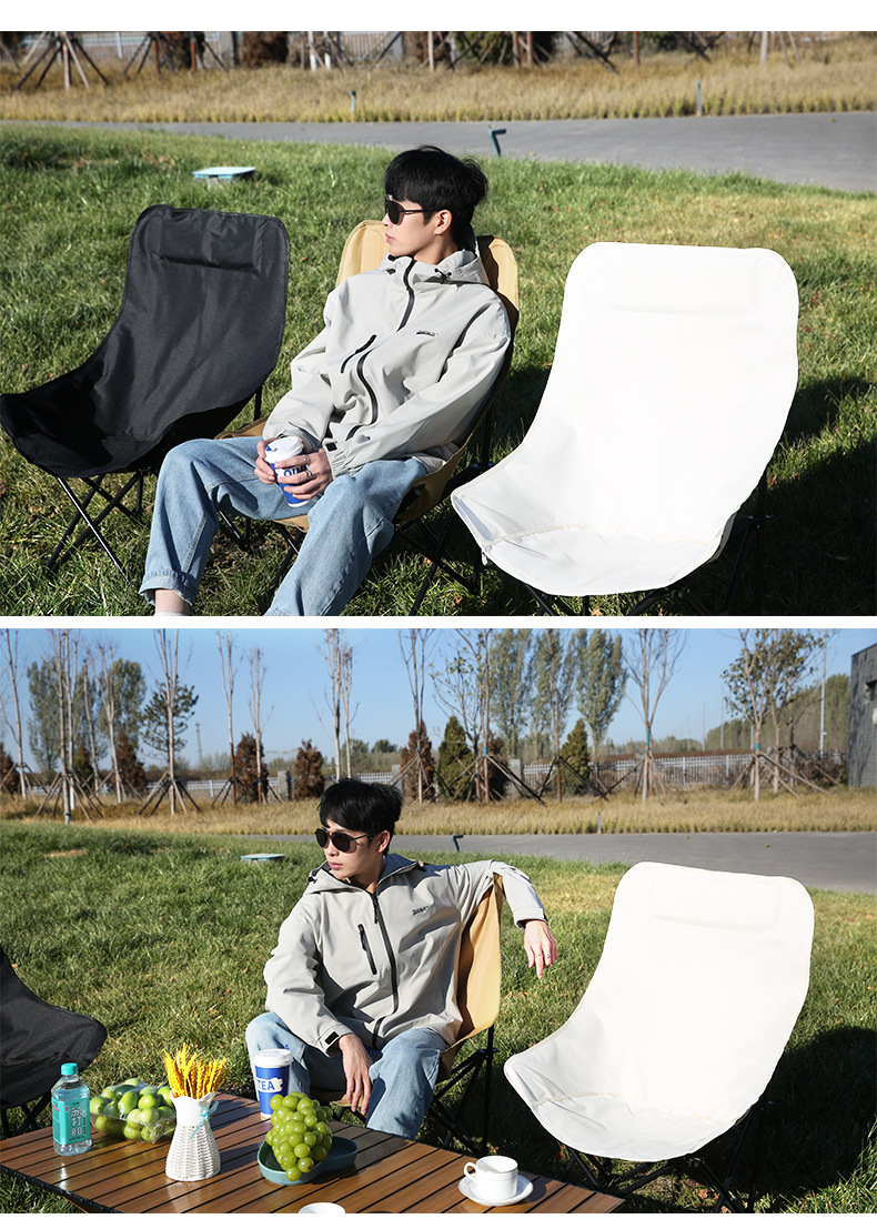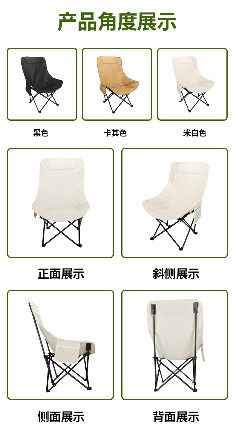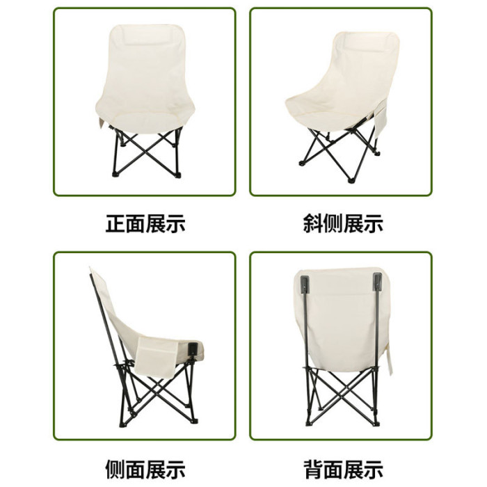 高背月亮椅可攜式釣魚椅野餐露營擺攤休閒垂釣椅沙灘椅戶外折曡椅