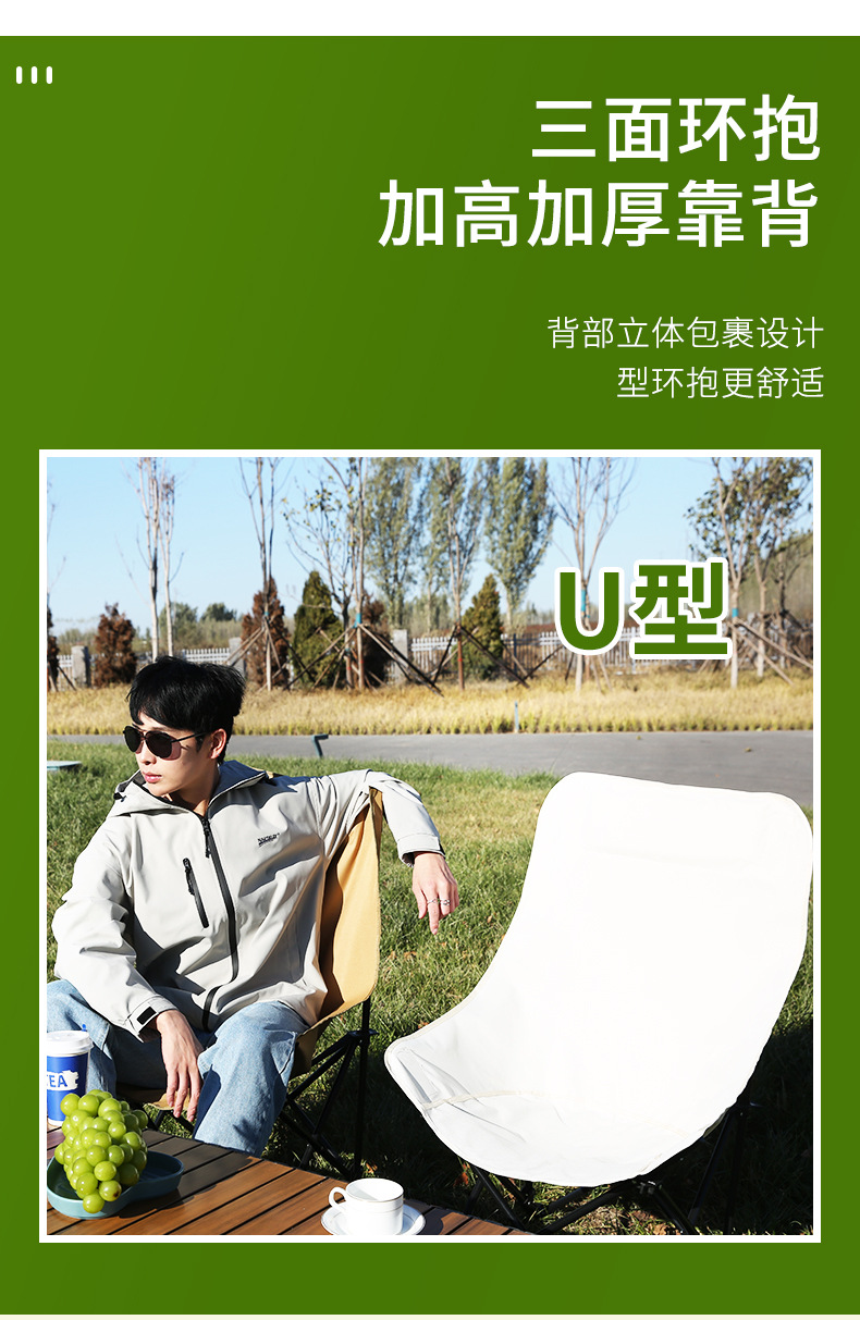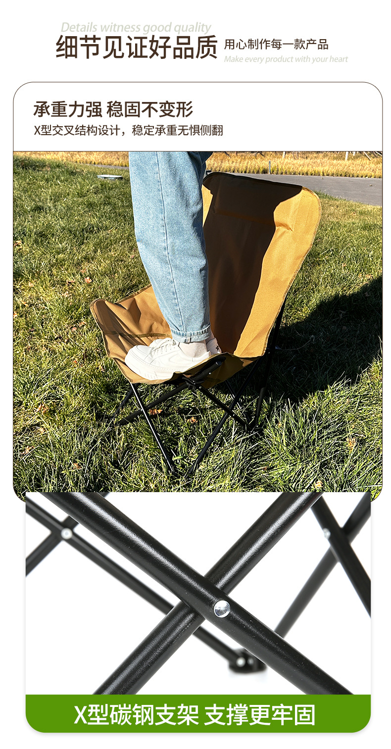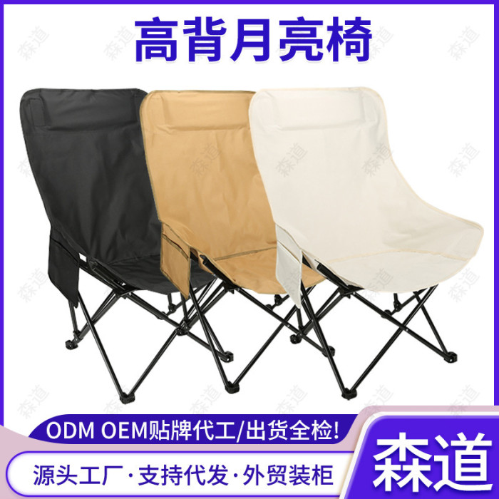 高背月亮椅可攜式釣魚椅野餐露營擺攤休閒垂釣椅沙灘椅戶外折曡椅