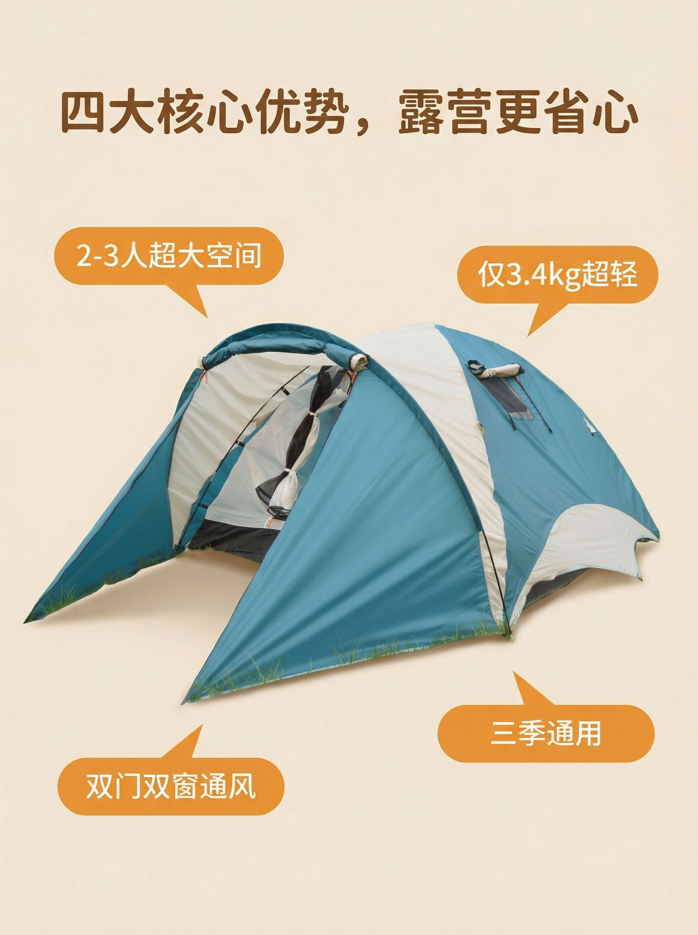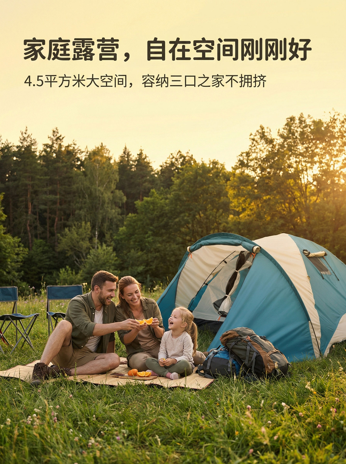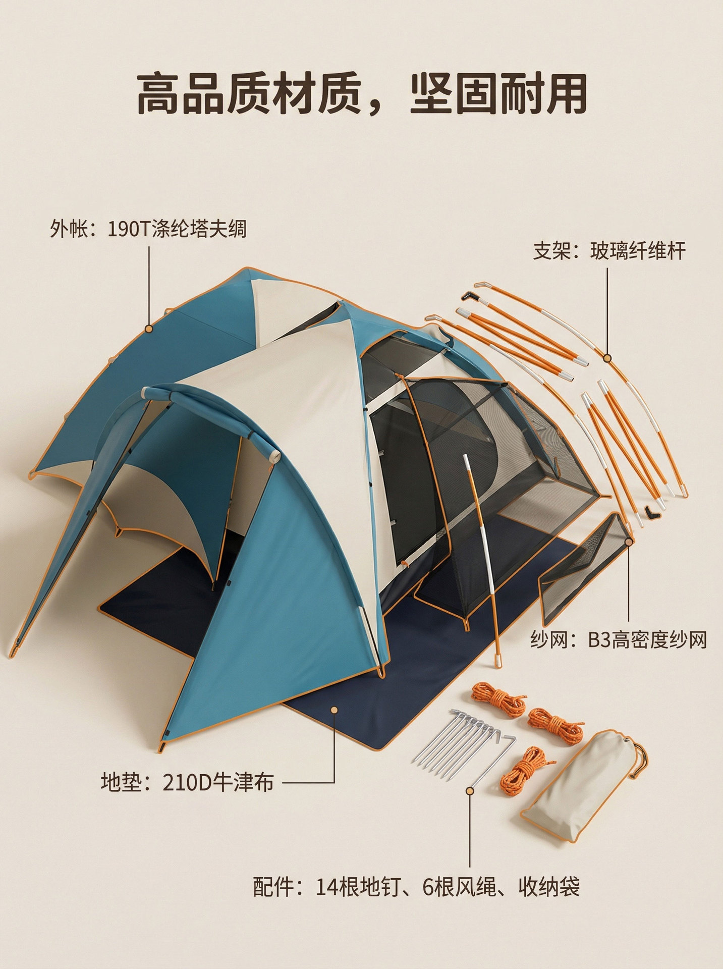 網紅露營帳篷戶外一室一廳加厚防水野營帳篷可攜式折曡簡易沙灘帳篷