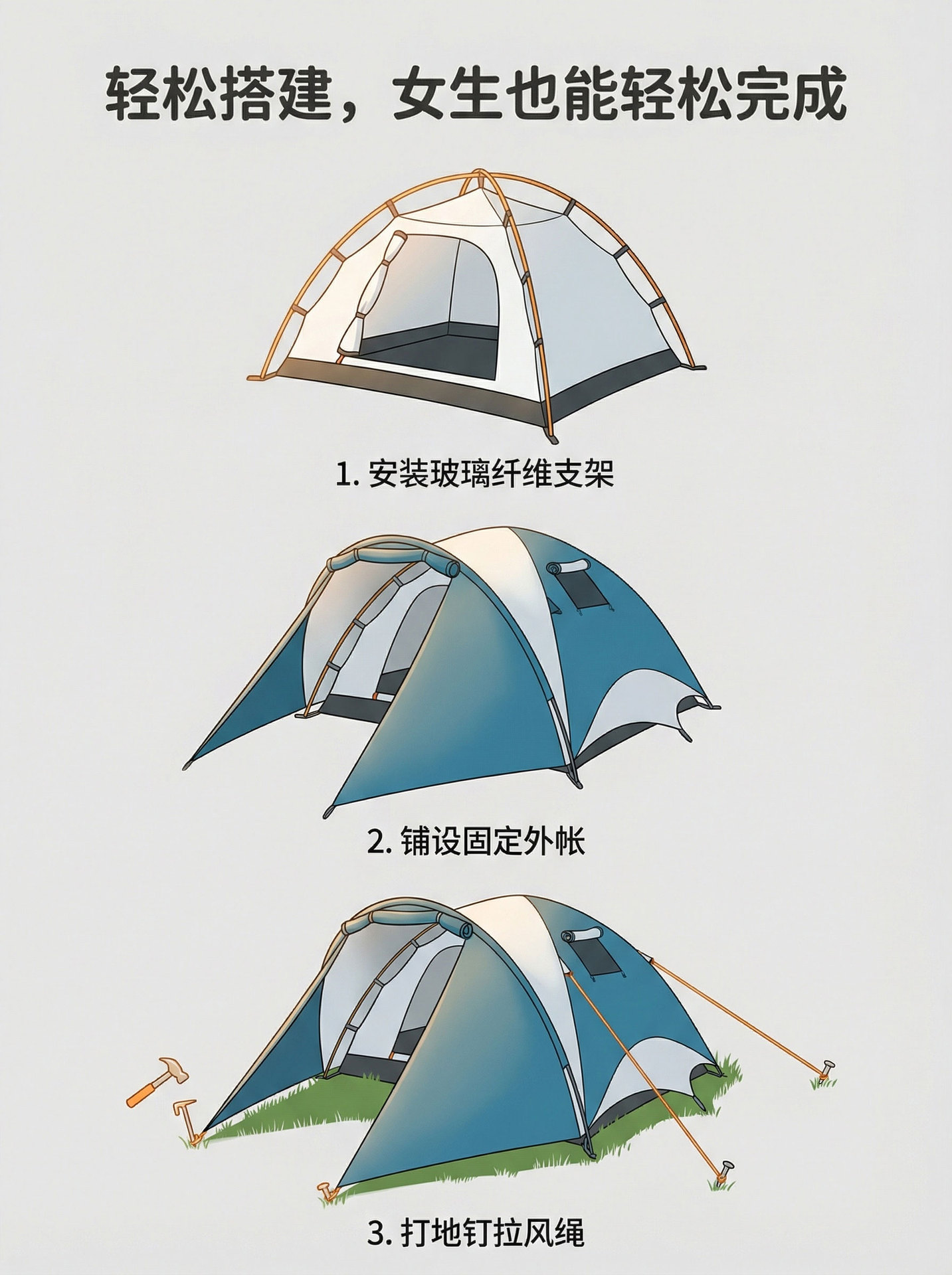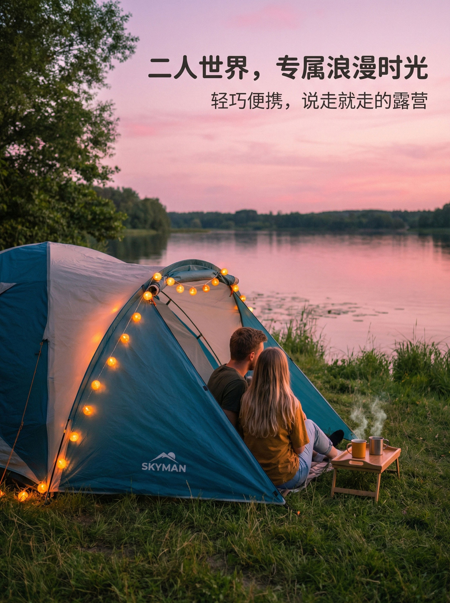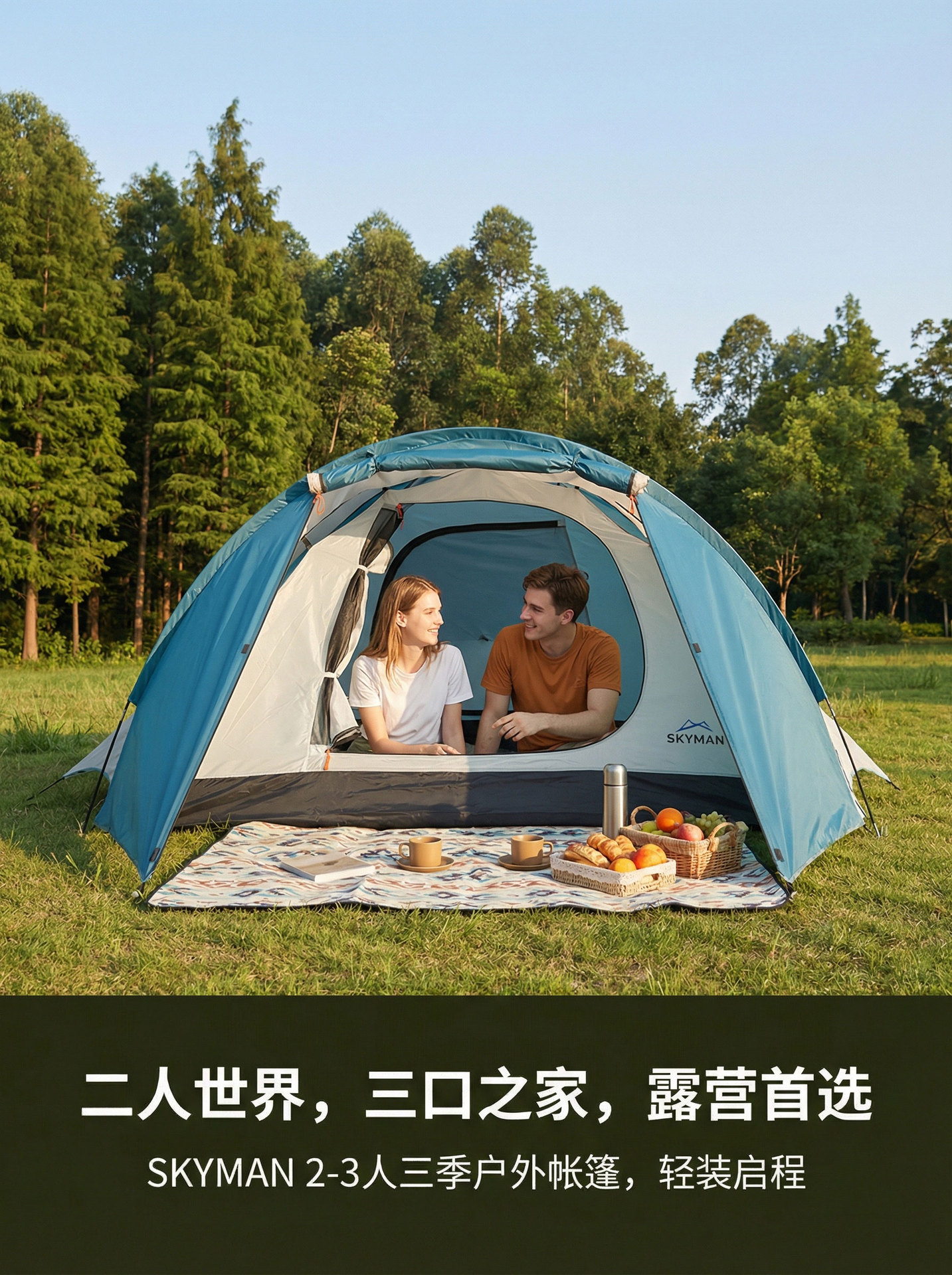 網紅露營帳篷戶外一室一廳加厚防水野營帳篷可攜式折曡簡易沙灘帳篷