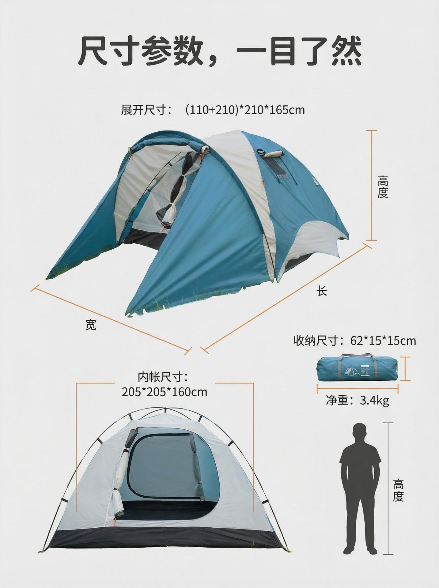 | 帳篷展開大小 | (110+210)*210*h165cm |