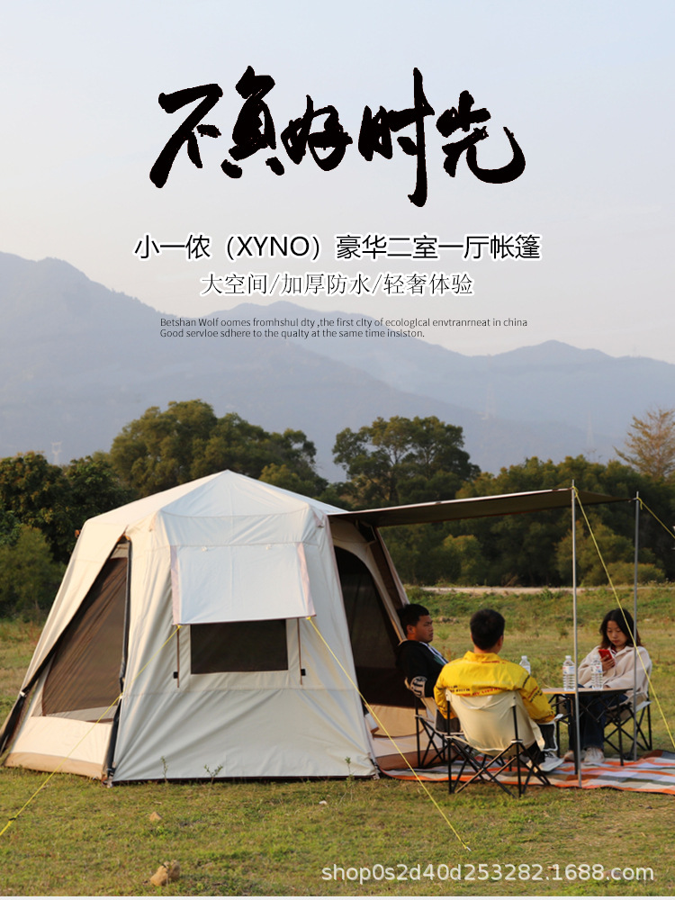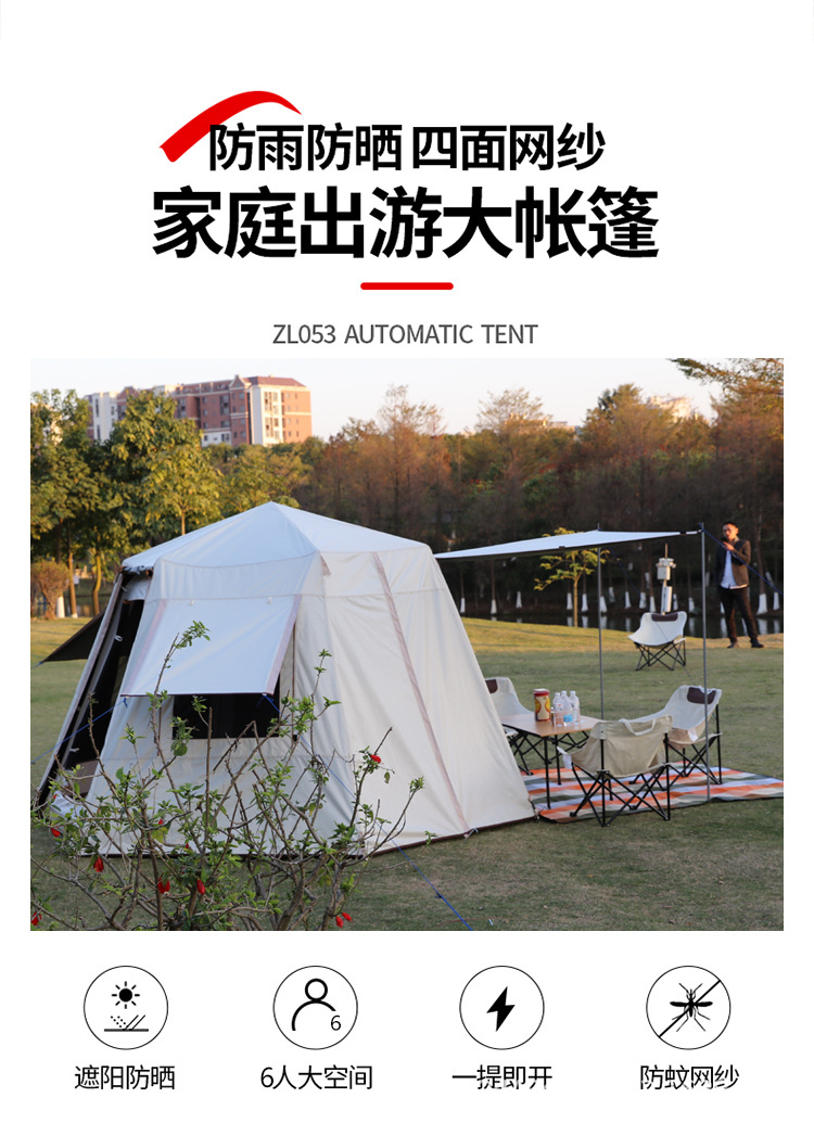 帳篷戶外全自動速開3-4人5-8人露營野營防曬防暴雨加厚黑膠全鋁桿