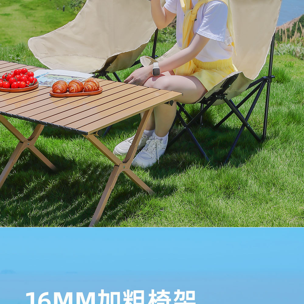 戶外可攜式折曡桌椅套裝露營野餐折曡椅戶外折曡蛋卷桌高背月亮椅