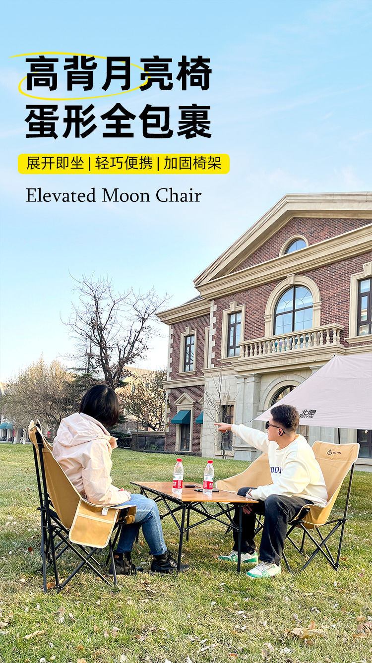 月亮折曡戶外折曡椅露營椅子可攜式釣魚野餐高靠背躺椅沙灘椅寫生