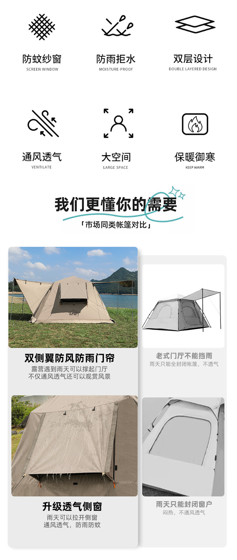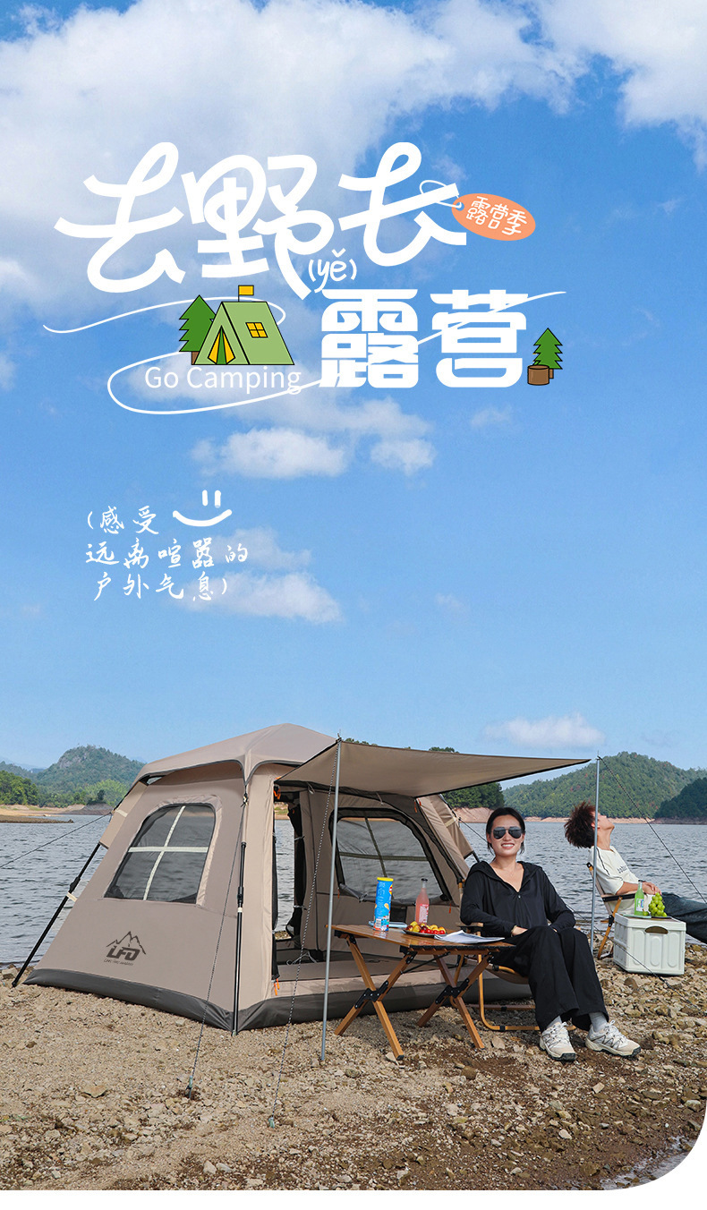 黑膠帳篷戶外可攜式折曡全自動加厚野餐野營露營防曬防雨帳篷